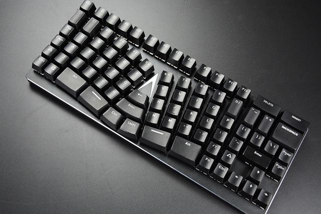 X-bows翼龙的键帽是不规则的,很多按键都是自己开模来做的,比如其Backspace还有数字0和1键等都是不规则的。包括很重要的空格键也是分成了两半,如果是按键掉落、损坏或者是用户想自己DIY键帽,都不容易买到一样的按键。所以,最好使用材质更好的键帽来减少损坏率以及满足更多用户的需要。不过,好在字母键和功能键都是正常的,一般的键帽都可以很好的安装,我个人用了几套键帽使用效果也都不错。