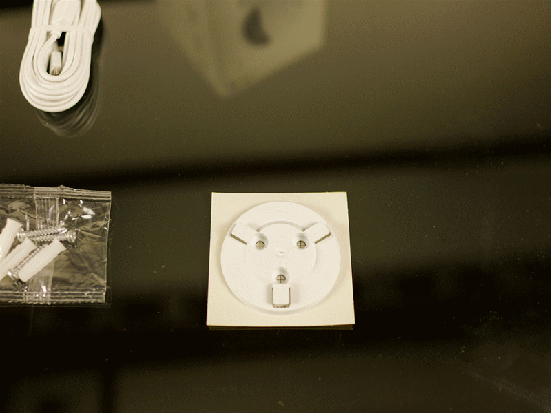 ▲C6C摄像机的标配清单包含:1、C6C摄像机主机×1,2、电源适配器×1,3、Micro USB接口充电线×1,4、用户指南手册×1,5、安装贴纸×1,6、安装底座×1,7、螺丝包×1。从C6C的定位来看,这样的配件基本可以满足壁装和吊装的需求了。但是很多需要安装摄像机的家庭用户,可能是在房子装修完成之后才去购买的摄像机,所以这部分用户当中,会有大部分人希望做到无损安装,那么完美的解决方案就只能去万能的TB购买第三方的摄像机支架了。