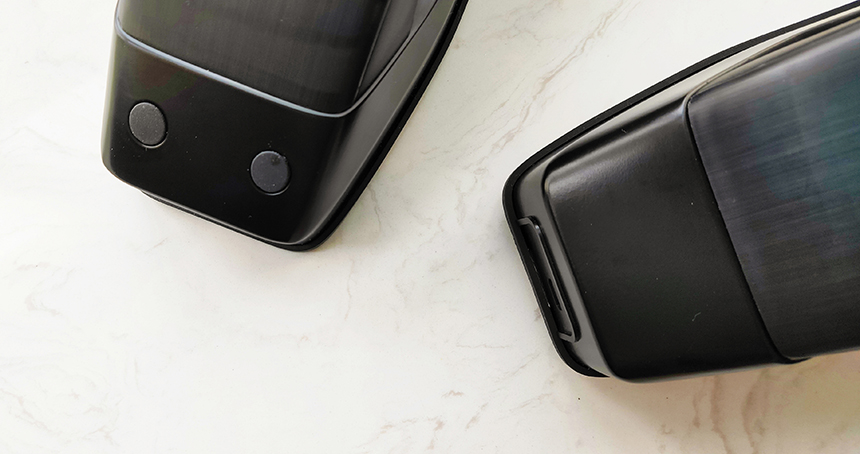 Q3后面板底部的两橡胶塞下面隐藏着两枚深孔螺钉,而前面板底部留有用来临时通电的USB孔和扬声装置。