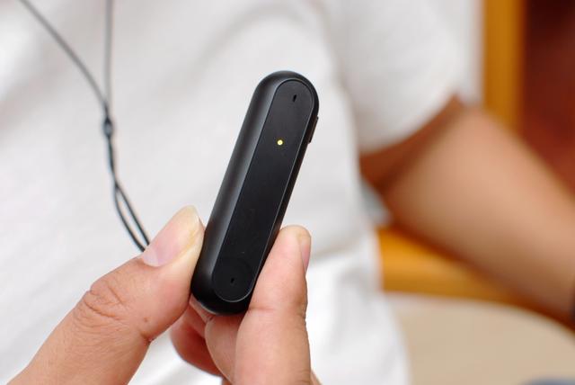 墨案智能速记录音笔的背面配备了一个夹子,我们可以根据需求将其固定在领口、胸口、背包等位置,当然还可以使用附送的挂绳挂脖,在录音笔的未端是电源键,长按1~2秒即可开启。