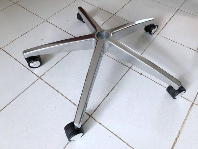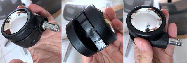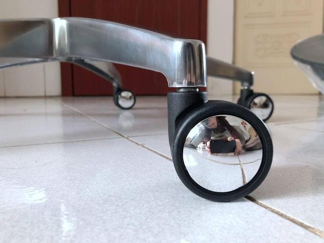 铝合金五星脚与滑轮的组合完毕,比我预想的要轻松,滑轮和五星脚的分量都挺足的。