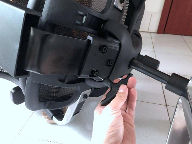 下一步该安装椅背了,这次需要在底盘固定三个螺丝,费时最久的一步。