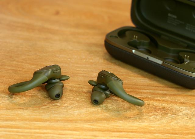 接下来我们看看耳机外观,不同于那些一味追求超小超轻的耳机,DOSS T63真无线蓝牙耳机的外观设计颇具运动元素。它的造型非常独特,带有一个防止掉落的耳挂搭配,这也保证了在各种剧烈运动状态下,不必担心耳机出现意外掉落的场景。
