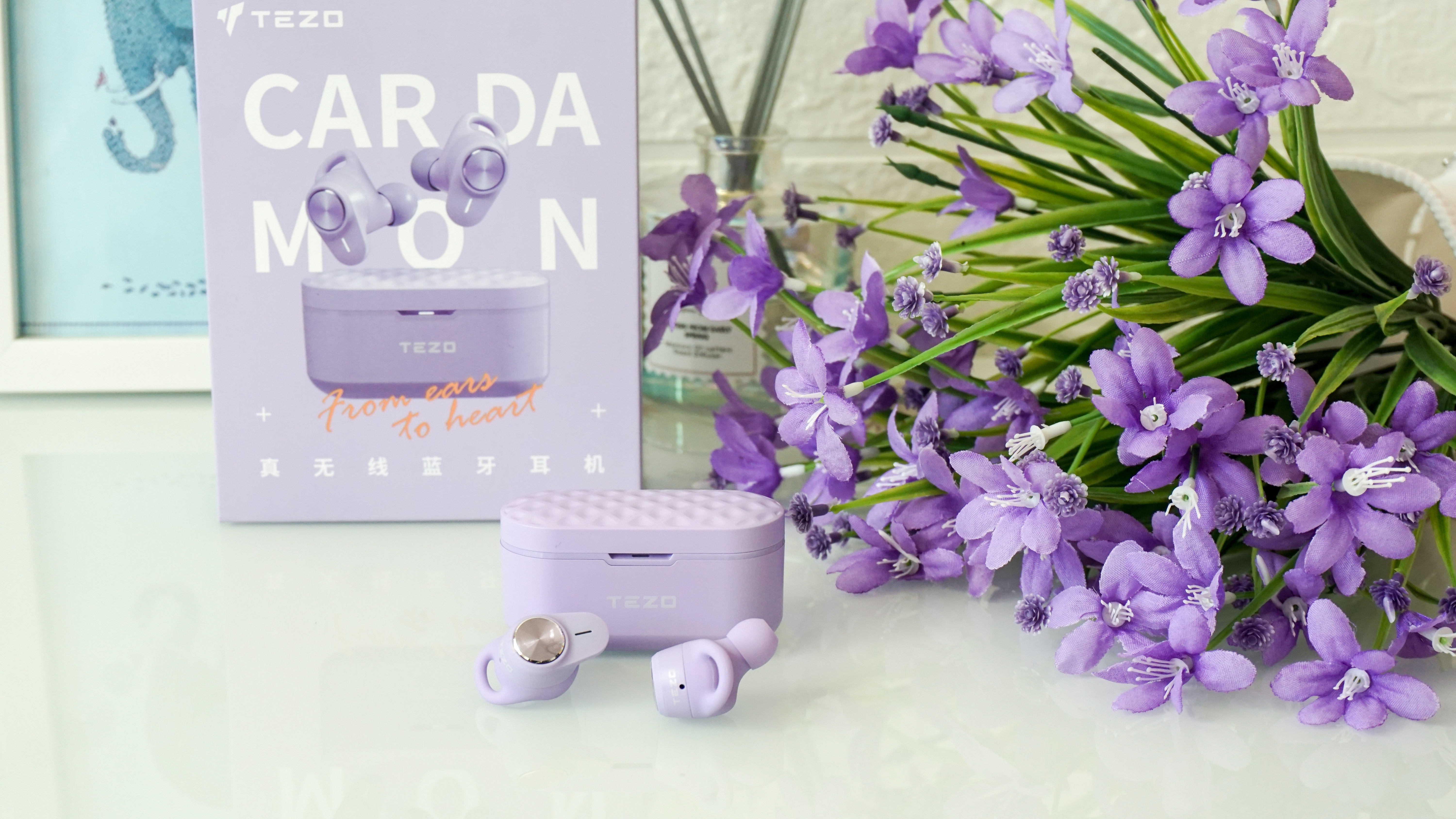 ▼Cardamon真无线蓝牙耳机,拥有四款时尚配色:英伦黑、冰岛白、塞班蓝,还有就是笔者入手的这款花见紫,清新时尚的配色,可以满足不同配色需求。这款花贝紫也是深得我心,时尚的配色,无论是何种场合都可以完美hold住全场。
