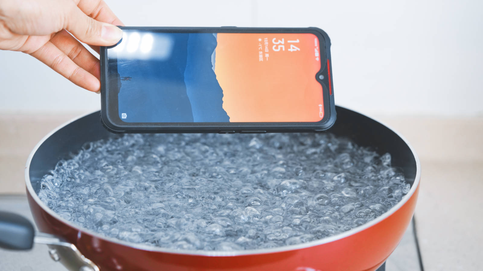 80ºC的喷枪我没有,不过想起来那个“铁锅炖自己”的梗,打算给AGM X5来个极限测试,不止80ºC,直接拿100ºC的沸水炖一下,看看会怎么样。
