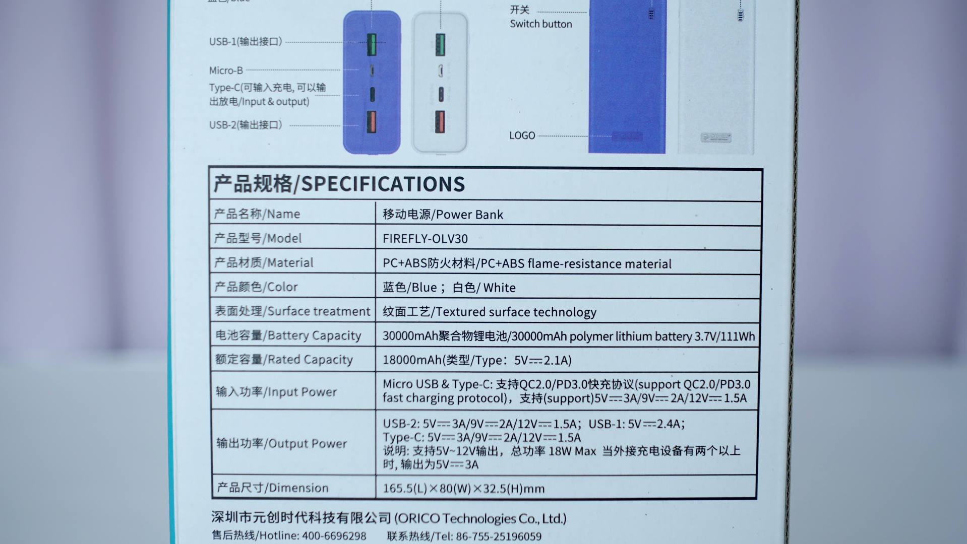 充电宝作为出差旅行必备的神器之一,消费者对充电宝的需求一直是容量越大越好,但是出于安全要求,大部分充电宝的容量被限制在了20000mAh以下,所以市面上充电宝容量能够达到30000mAh的少之又少,不过这次我拿到的奥睿科FIREFLY-OLV30充电宝,其电池容量达到了普遍消费者理想中的30000mAh,而且还支持多种快充协议,可以满足不同的设备同时充电,简直是一“宝”在手,出门充电不发愁。