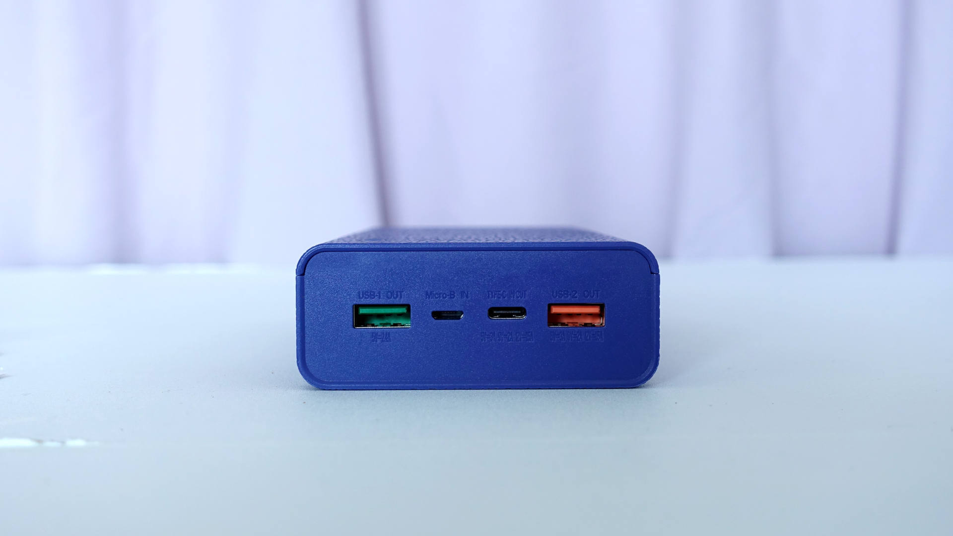 在接口方面,一共有四个接口:USB接口×2、Micro-B口×1、Type-C口×1,每个接口的的充电功率都在接口下方做了简单标注。