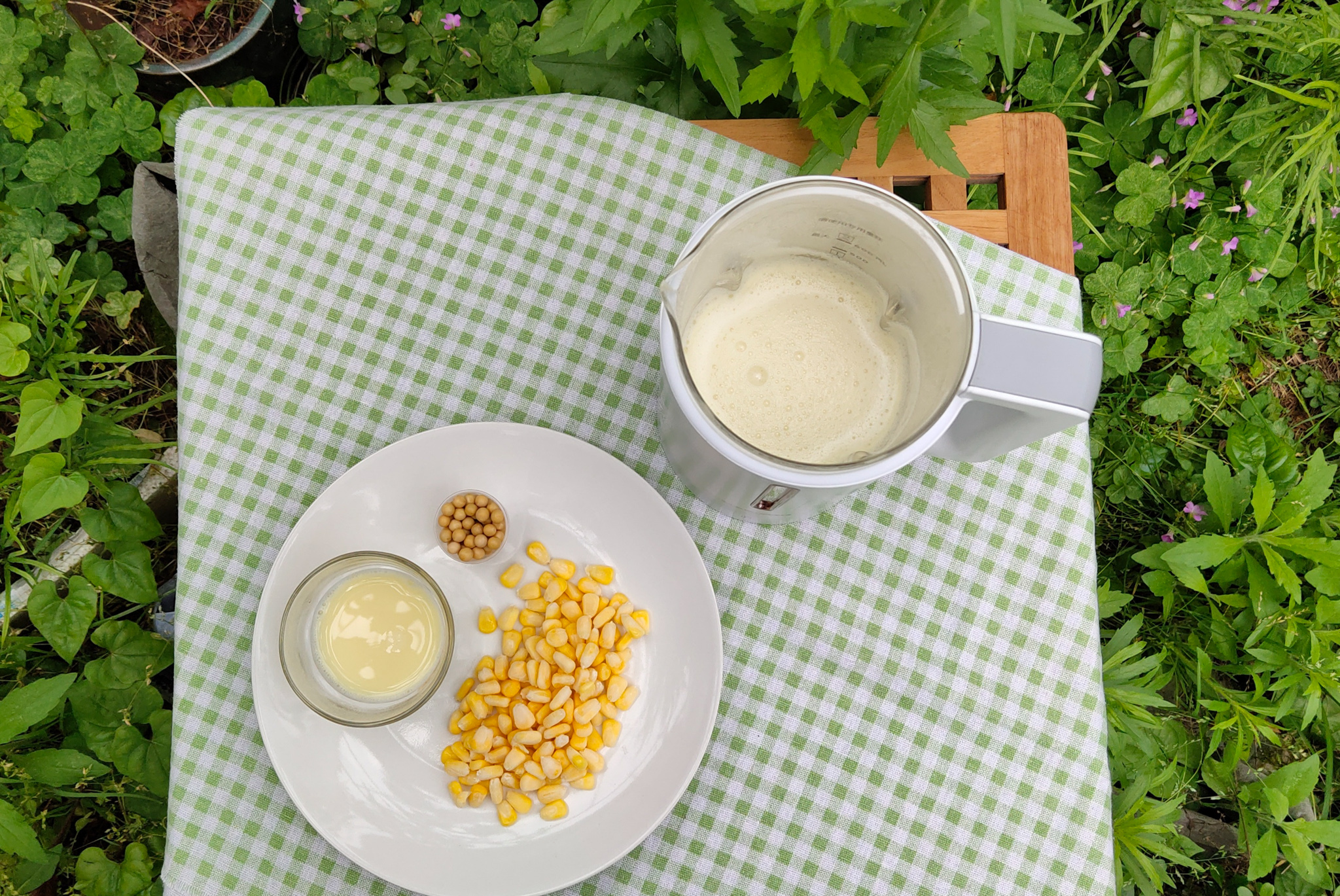 黄豆20克,新鲜玉米粒40克,搭配水600ml,豆浆或者玉米汁模式,制作时间20-30分钟。