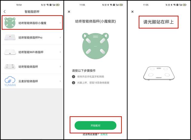 ▼咕咚智能体脂秤小魔瘦与咕咚APP无缝衔接,通过手机蓝牙连接,在“我的”中添加设备,连接智能设备,选择智能体脂秤即可。当然,咕咚的智能产品和设备还是蛮多的,通过咕咚手机APP软件就可连接许多款咕咚智能设备,使用时方便又省事。