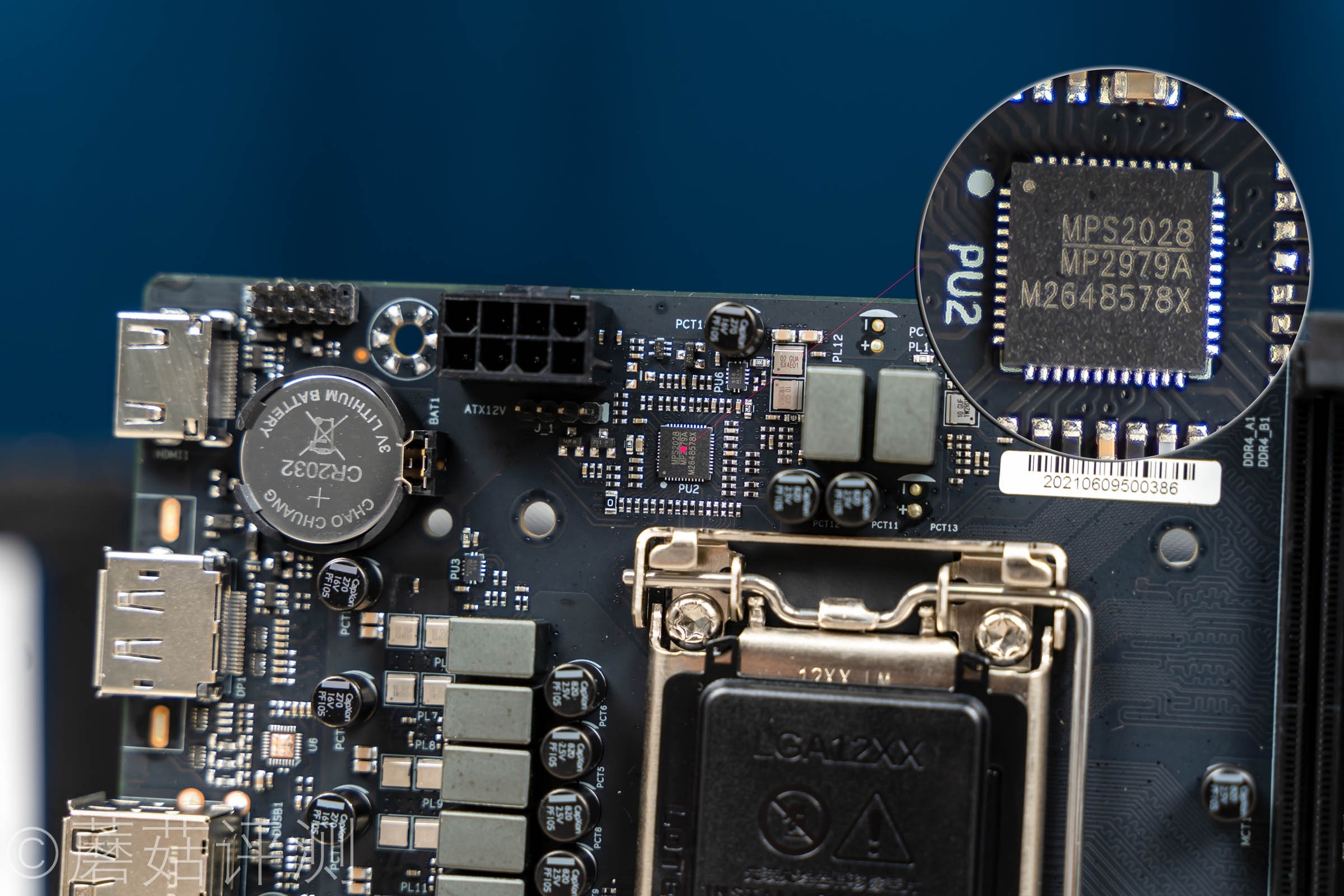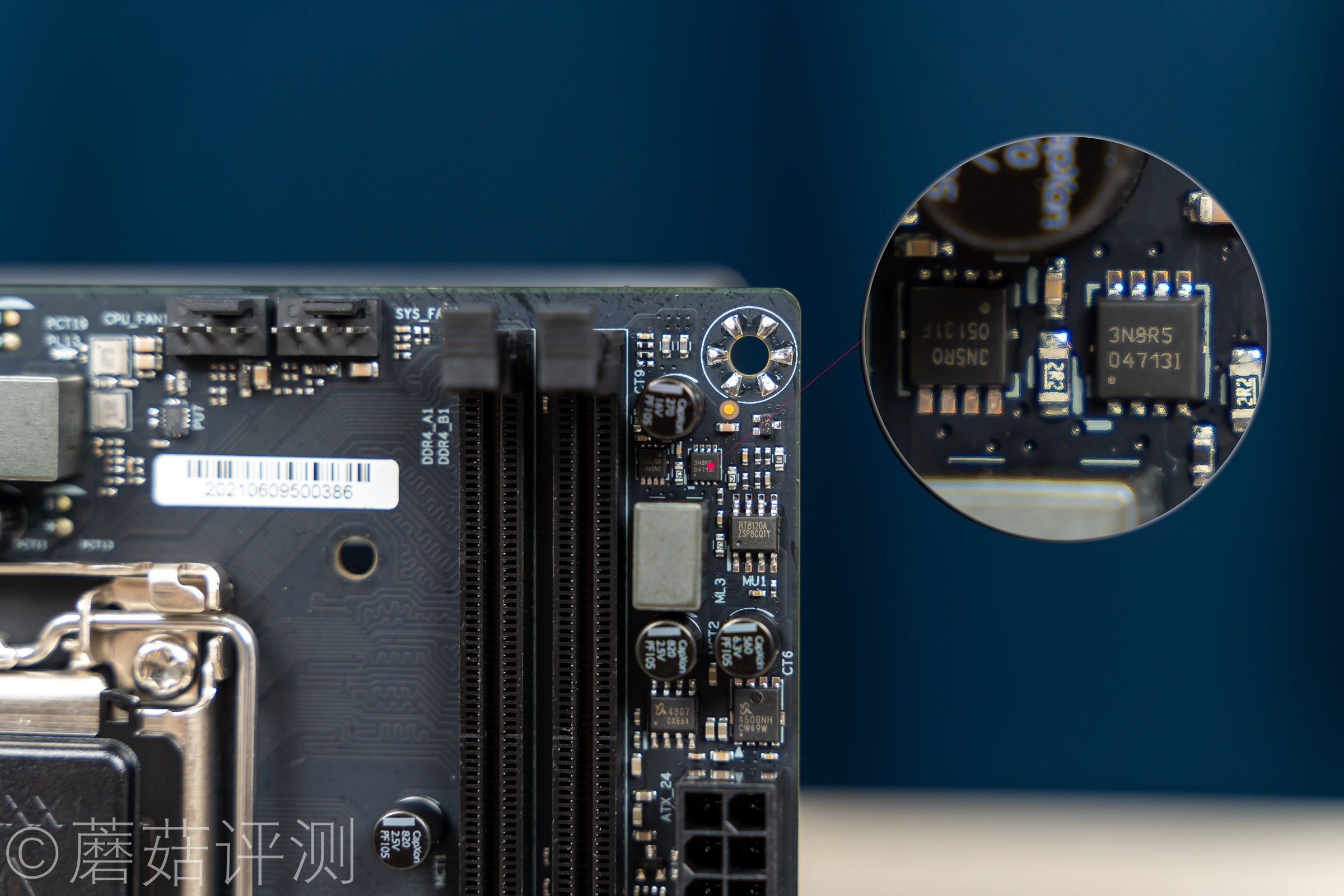 ▼主板的左上角有一相内存供电,中规中矩。
