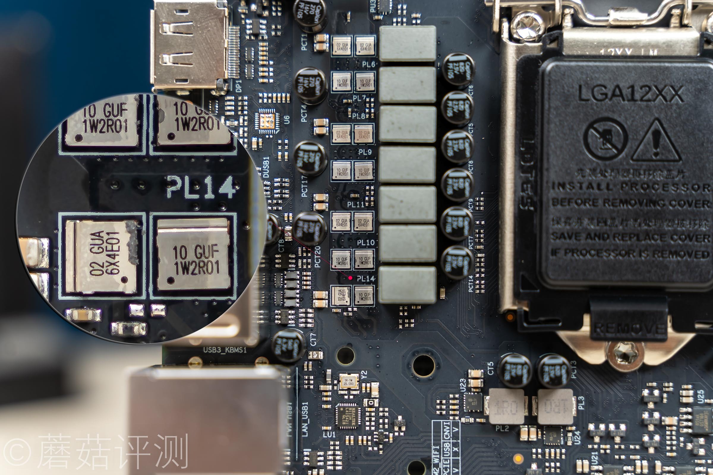 ▼上侧是两相供电,一上一下设计,负责处理器的Vgt,也就是核显供电。