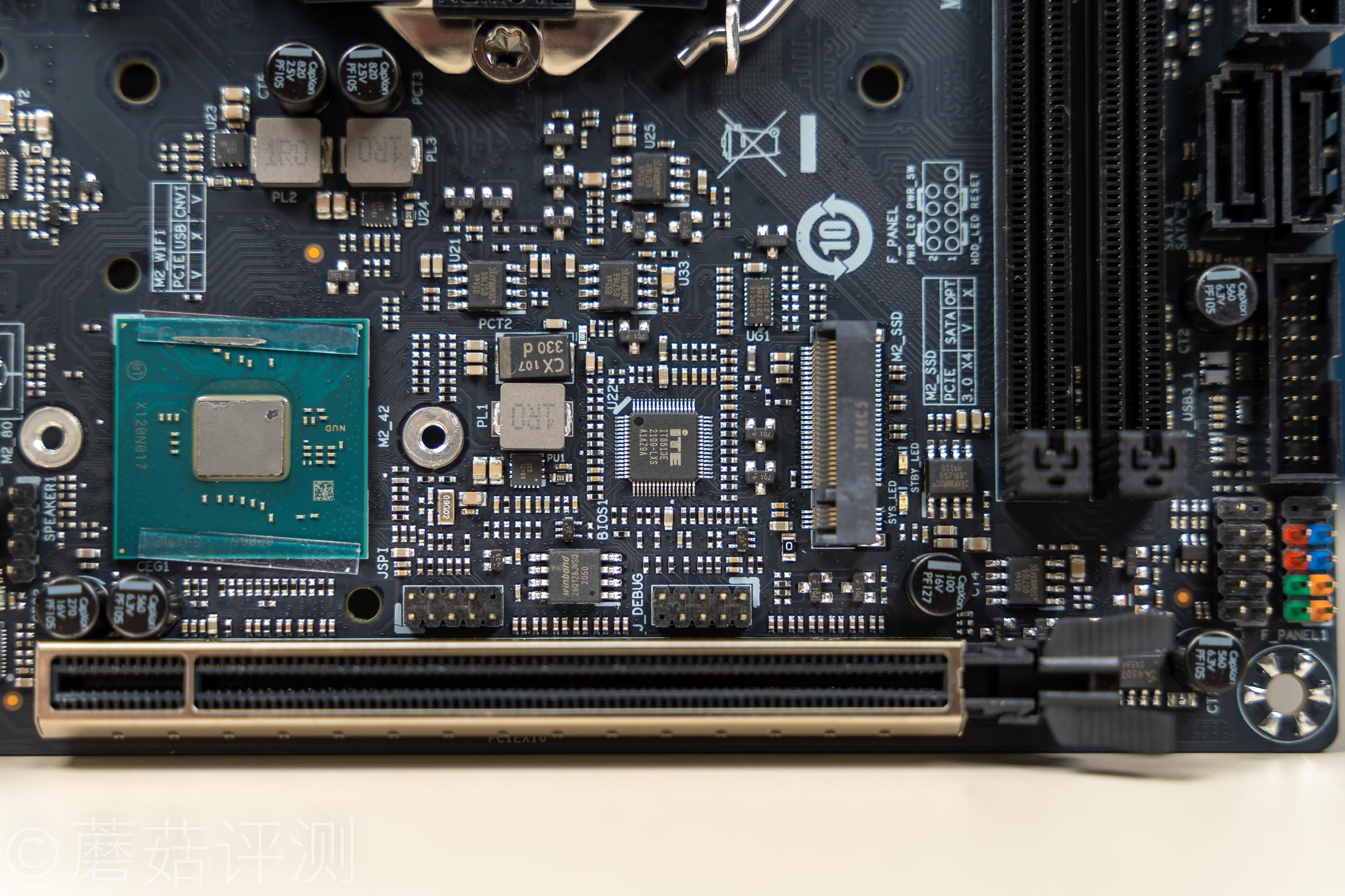 ▼主板的M2插槽旁边有一颗IT8613E芯片,用于监控主板的各项参数。旁边还有一颗主板的BIOS芯片,看丝印貌似是16MB的。
