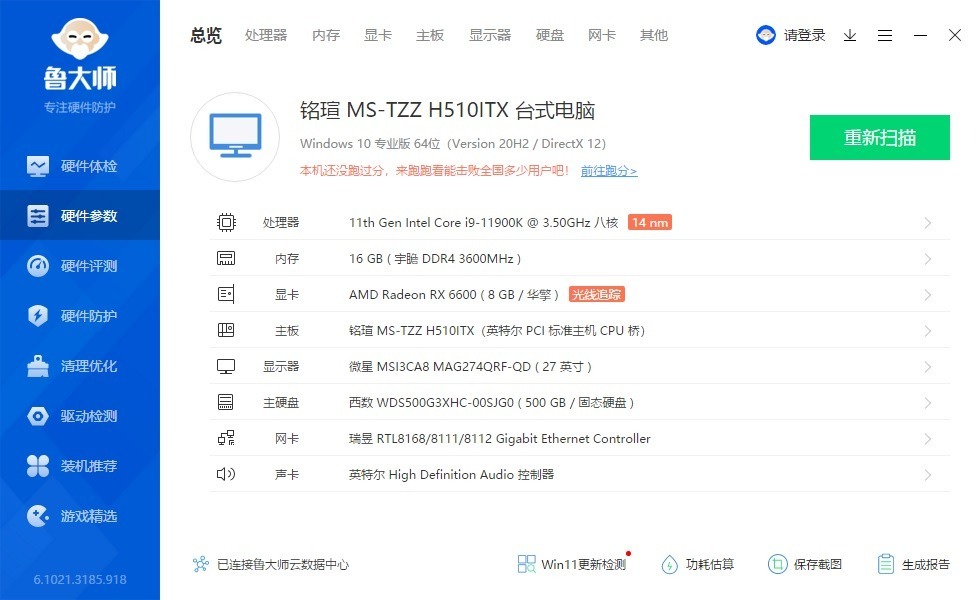 ▼显卡是华擎的RX6600挑战者,这里就是为了亮机测试用。