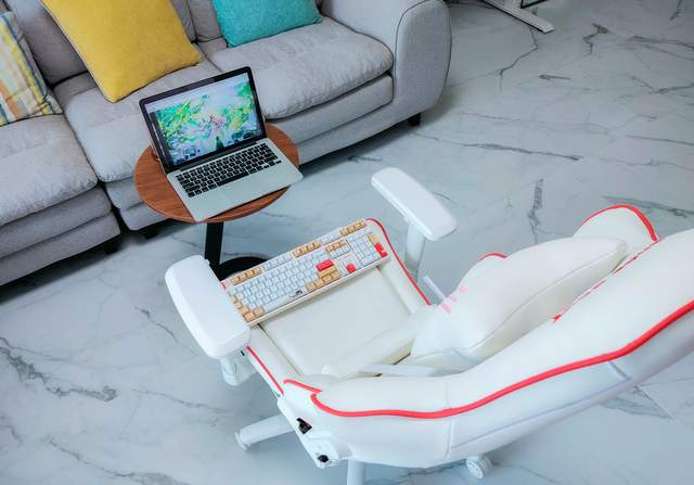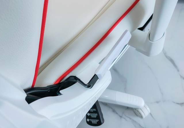 底盘往上便是坐垫。andaseaT安德斯特阴阳师茨球电竞椅的坐垫为纯白皮质材质,封边采用了红色,红白配既有可爱风,也不失电竞风。