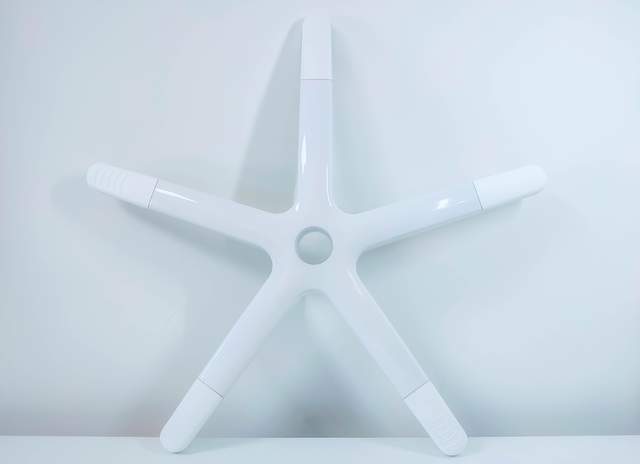 椅脚为五星造型,五只“触手”具有一定的弧度。具体参数为半径35cm,高约7.8cm,市面上椅脚材质主要分为尼龙、钢制和铝合金,毫无疑问铝合金的承重性最好,成本自然也是最高。在每一个“触手”末端还装了防滑垫,可有效保护用户坐在椅子上搁脚时避免因为打滑导致身体重心不稳撞翻椅子。