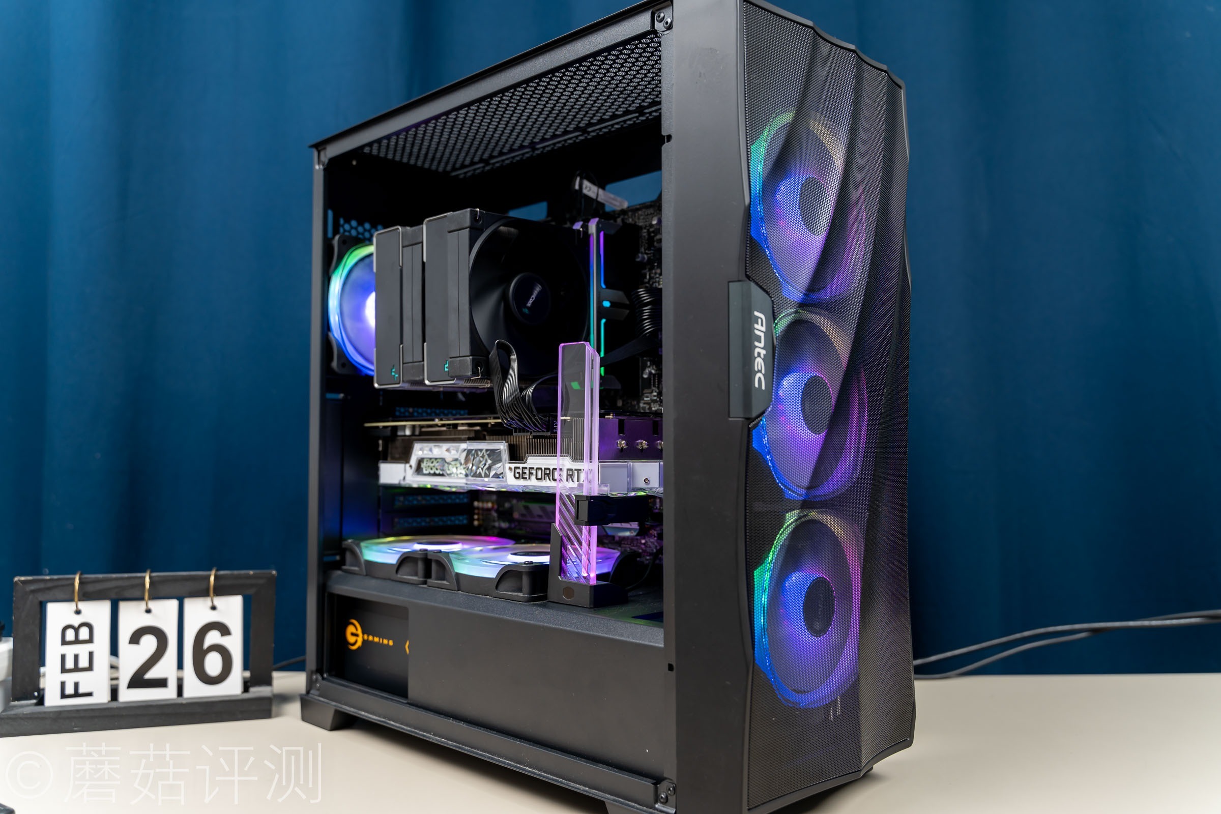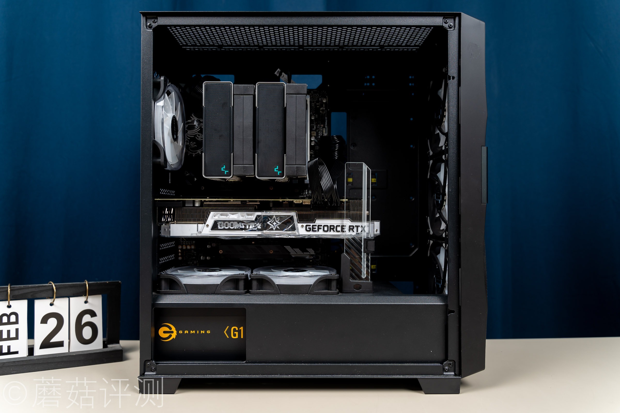 ▼机箱的内部风道很简单,前进、后上出,另外在电源仓的上面,还有机箱风扇位,专门用来照顾显卡。