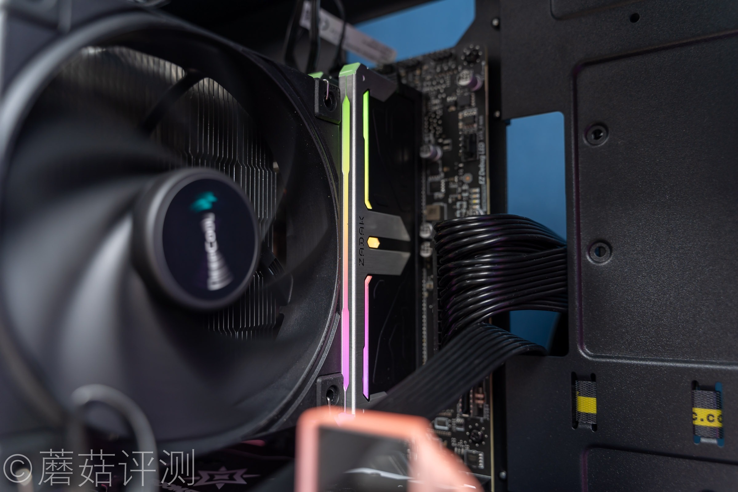 ▼内存是扎达克,不过内存的灯效被九州风神的AK620冰立方挡住了。