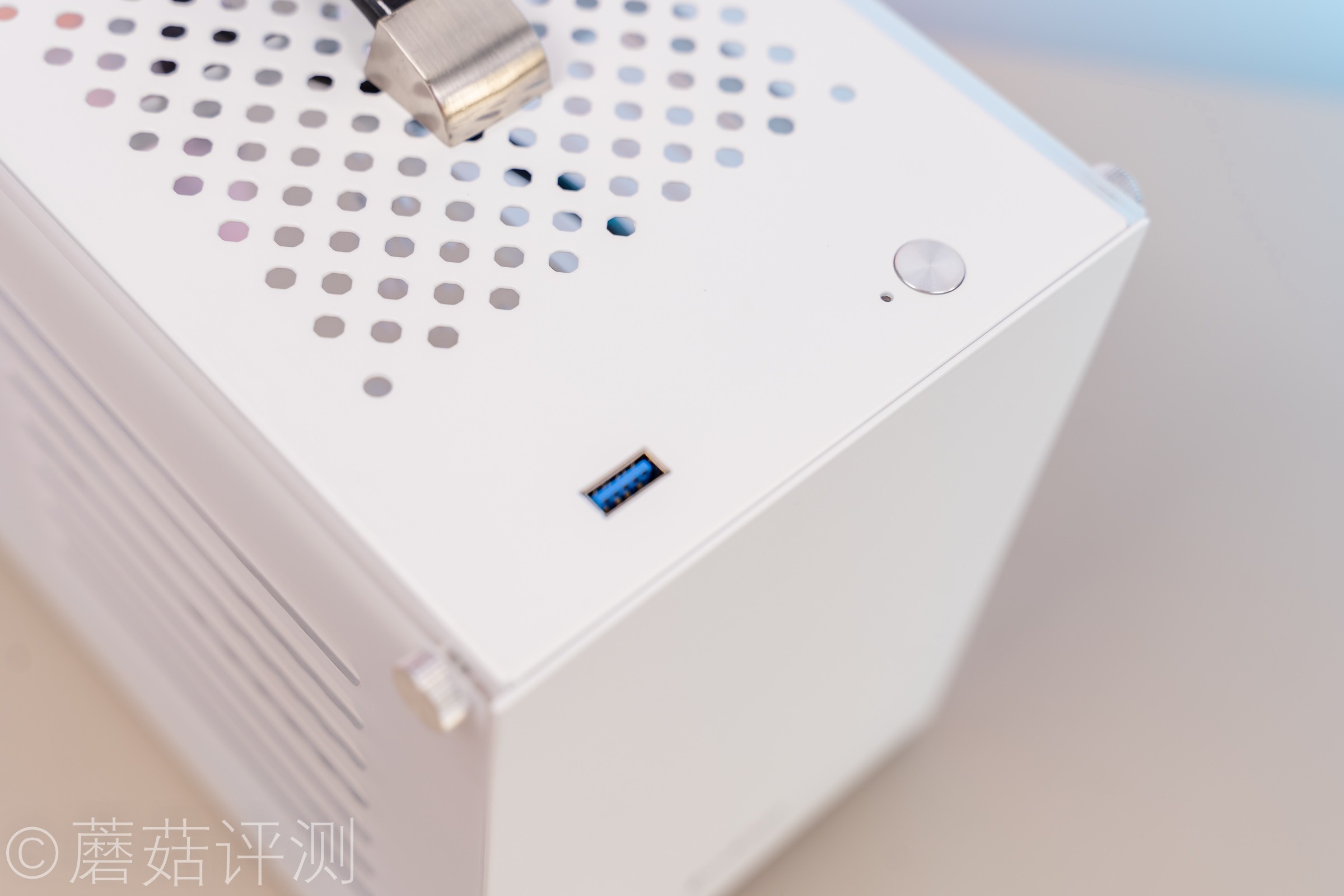▼机箱的IO面板很简单,一个开机键,一个USB3.0的插口。