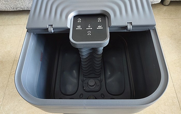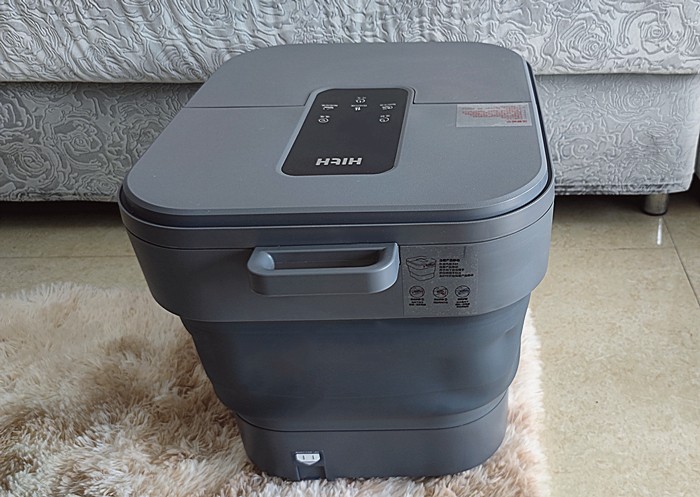经过对HITH智能自动折叠足浴器D3外观细节的鉴赏和多天的使用后,整体感觉不错。它采用自动升降折叠设计,省心省力,干净卫生,避免感染。折叠时,更像一个星空灰色的圆角方形“手提包”,时尚、大气和科技感十足,颜值高,而且收纳和取用便捷,不占地。展开后,时尚、简约和精致。它不仅好看,而且智能交互触控简单,易上手。它拥有了DPS加热系统,防止静电麻感,同时提升加热速度;拥有水温探测器和蝶形温控器,恒温精控,让水温持久恒定,热泡暖暖舒适;拥有3D按摩椅机芯,分区精准按摩,3个按摩区、3种模式,3种按摩力度,享受按摩师级专业按摩的体验,还拥有软胶按摩垫、循环涌泉冲浪、电动升降折叠、防漏电保护系统电源线等亮点,是款不错的足浴器。在体验过程中发现,还有些不足的地方可以改进,如:排水口没有排水管设置,给排水带来不便。