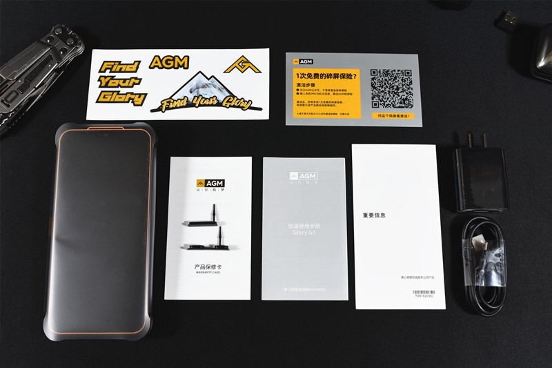 ▲包装清单呢,就是AGM G1 Pro主机、充电头、TYPE-C充电线、说明书、保卡、1次免费碎屏险;看到这里就感觉到了AGM这次带着厚道而来,碎屏险这个保障国内甚至国外的手机品牌,我是一次没见过有赠送的,还有nano卡和充电口备用胶塞,细节可以了。