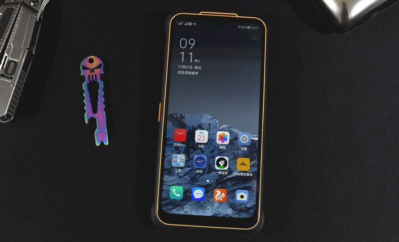 ▲AGM G1 Pro 采用一块6.53''康宁大猩猩屏,分辨率为1080P,刷新率为60Hz,亮度约为310nit,前置摄像头为水滴屏设计,听筒设计在了顶部边框内,也是将这款屏幕的面积发挥到极致了,屏幕边框的橙色线条高出屏幕0.3mm,有效防御手机落地瞬间对屏幕的冲击。系统方面采用安卓11 X OS 6最新系统,应用打开速度提升57%,应用运行效率提升46%,画面切换效率提升32%;内置了双卫星L1+L5,导航精确到3米内,在户外可精准确认你的位置。