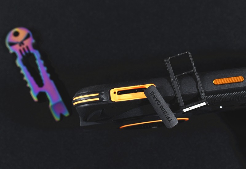 ▲另一面顶端就是TF/SIM卡槽了,需要使用卡针顶开,可插入一张nano sim和一张TF存储卡,或者两张nano sim卡,本款AGM G1智能机为全网通制式,并支持5G信号,频段包括n1、n3、n28、n41、n77、n78。内置骁龙480SoC核心,8nm制程、765G同款CPU组合、750G同款GPU、690同款X51基带,一会跑个分。