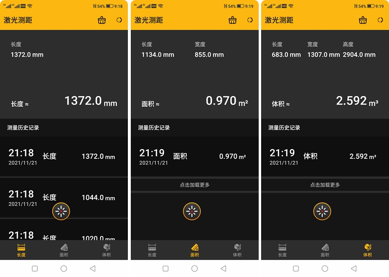 ▲其实在拿到这款手机前就有所了解,新加入了革新的三种功能,不按常规出牌,而且还全都是狠牌,先说激光测距,用史无前例不为过吧,测距就测距你还能测面积和体积就过分了,激光测距模组设计在机身的顶端,整体与背部的摄像头模组为一体化,红色部分就是激光发射器,另一端的方形探头就是接收器,最大范围在20米,精度达到了1mm,实际效果还是不错的,只要电机测距按键得到数据的速度相当效率。