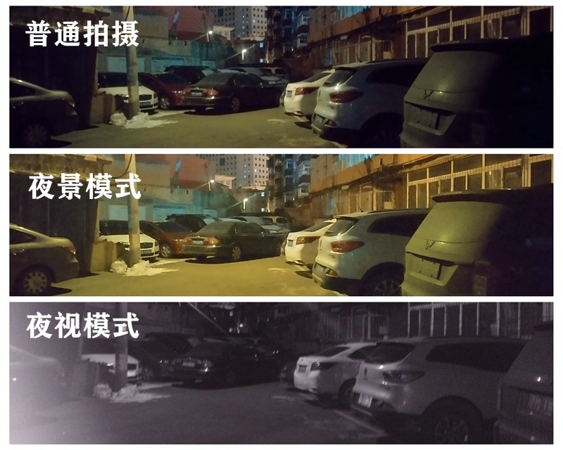 ▲由此对比可见,夜景模式的色彩,亮度,清晰度都是非常不错的,全部手持拍摄,但是夜景会有抖动虚片概率,普通拍摄和夜视拍摄均为顺势出片,基本无虚片,成像效率更高。