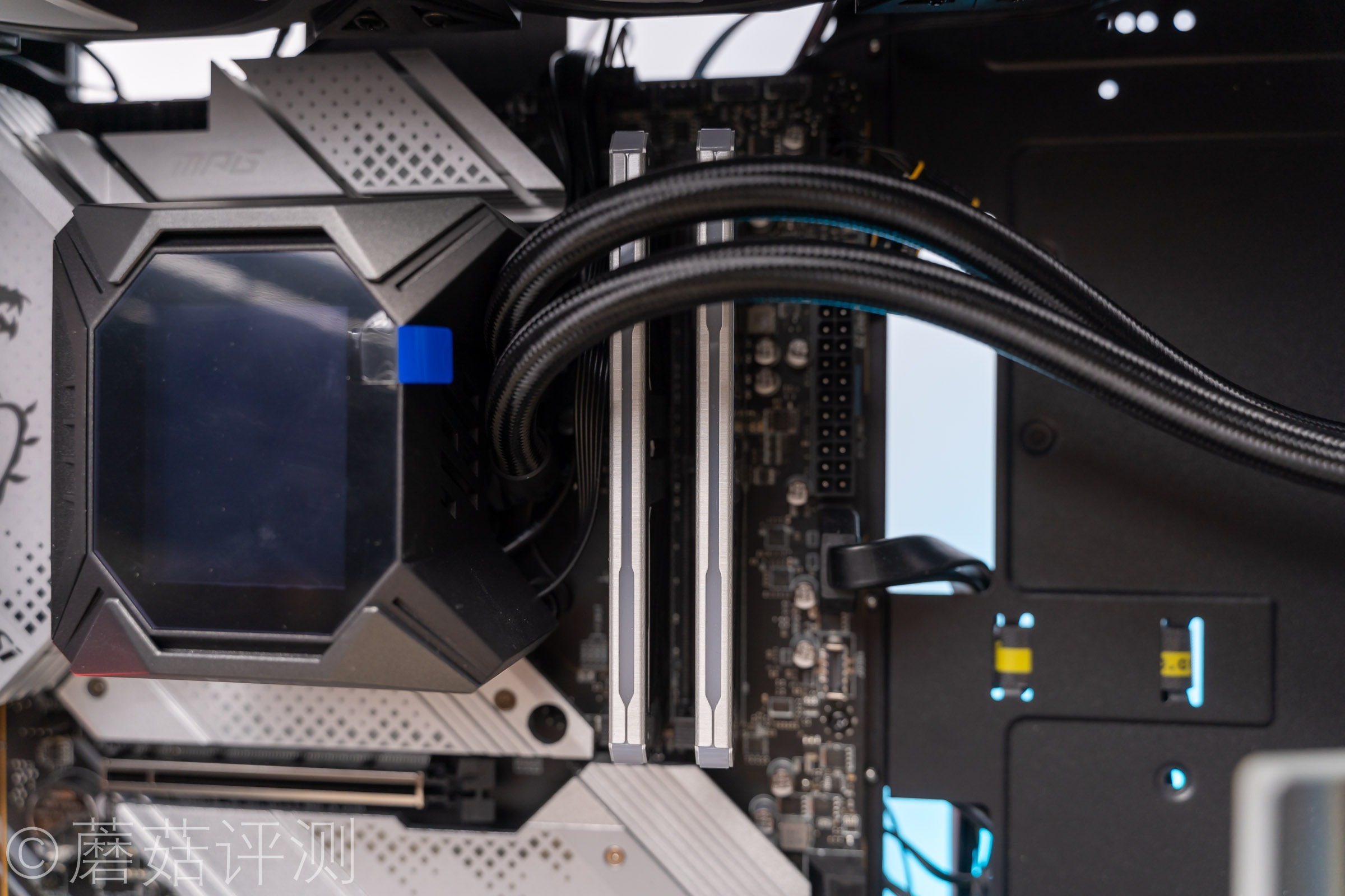 ▼装好内存之后,内存顶部的银色部分和微星的这块Z690刀锋Ti主板非常搭配。