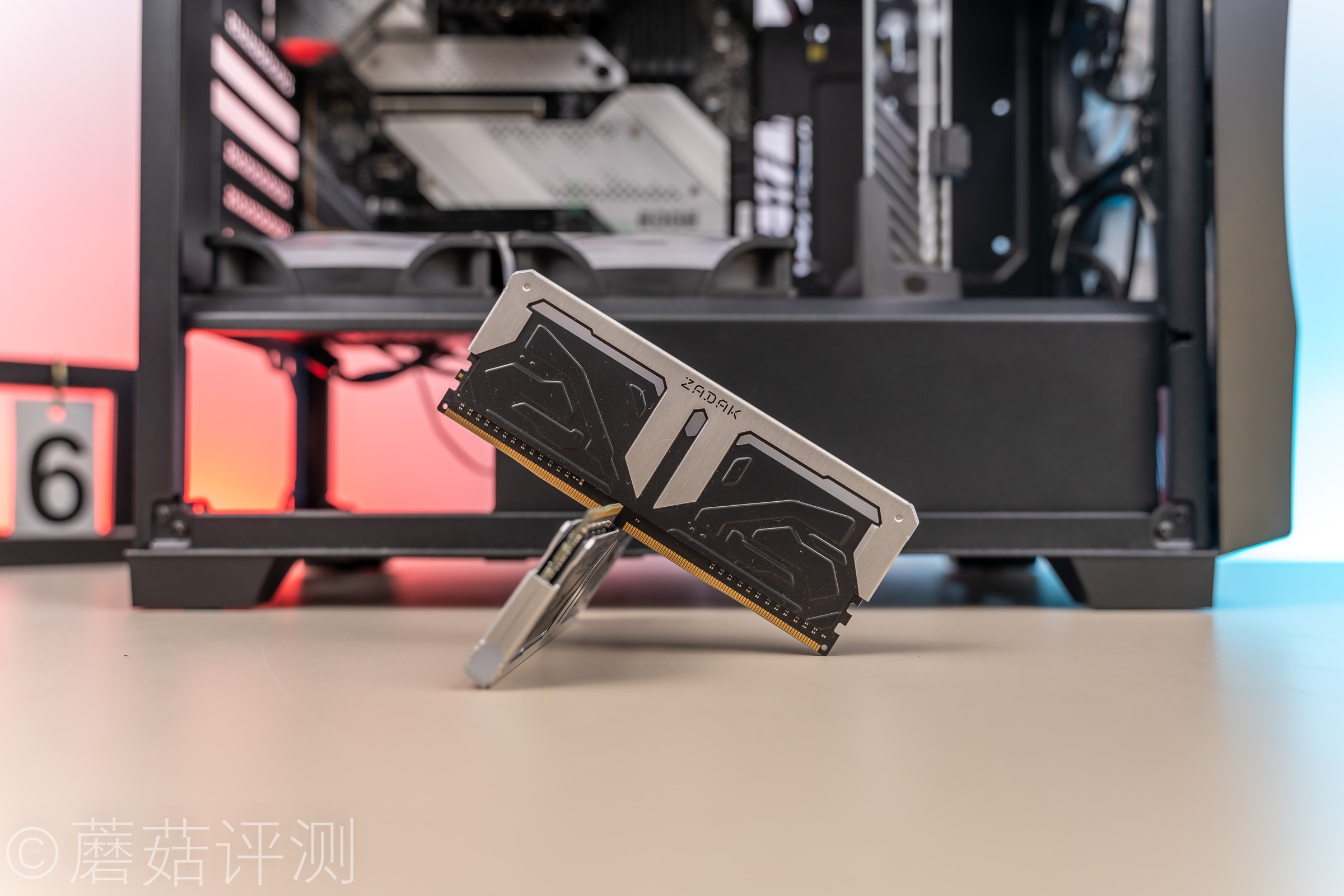 ▼接着安装内存,扎达克的SPARK。内存的马甲设计的很漂亮,撞色设计,中间是黑色的,顶部是银色的。