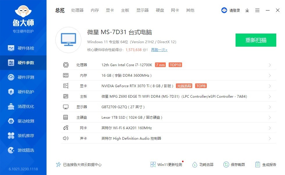 ▼显卡是影驰的RTX3070Ti 星耀OC永劫无间定制版,显卡的颜值很漂亮。