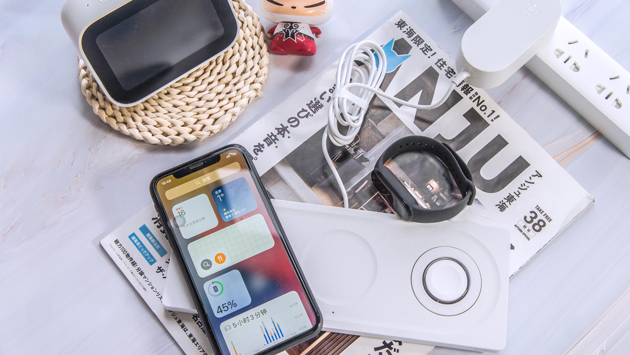 底座从左到右三个位置可以分别给iPhone、AirPods和Apple Watch产品进行无线充电。