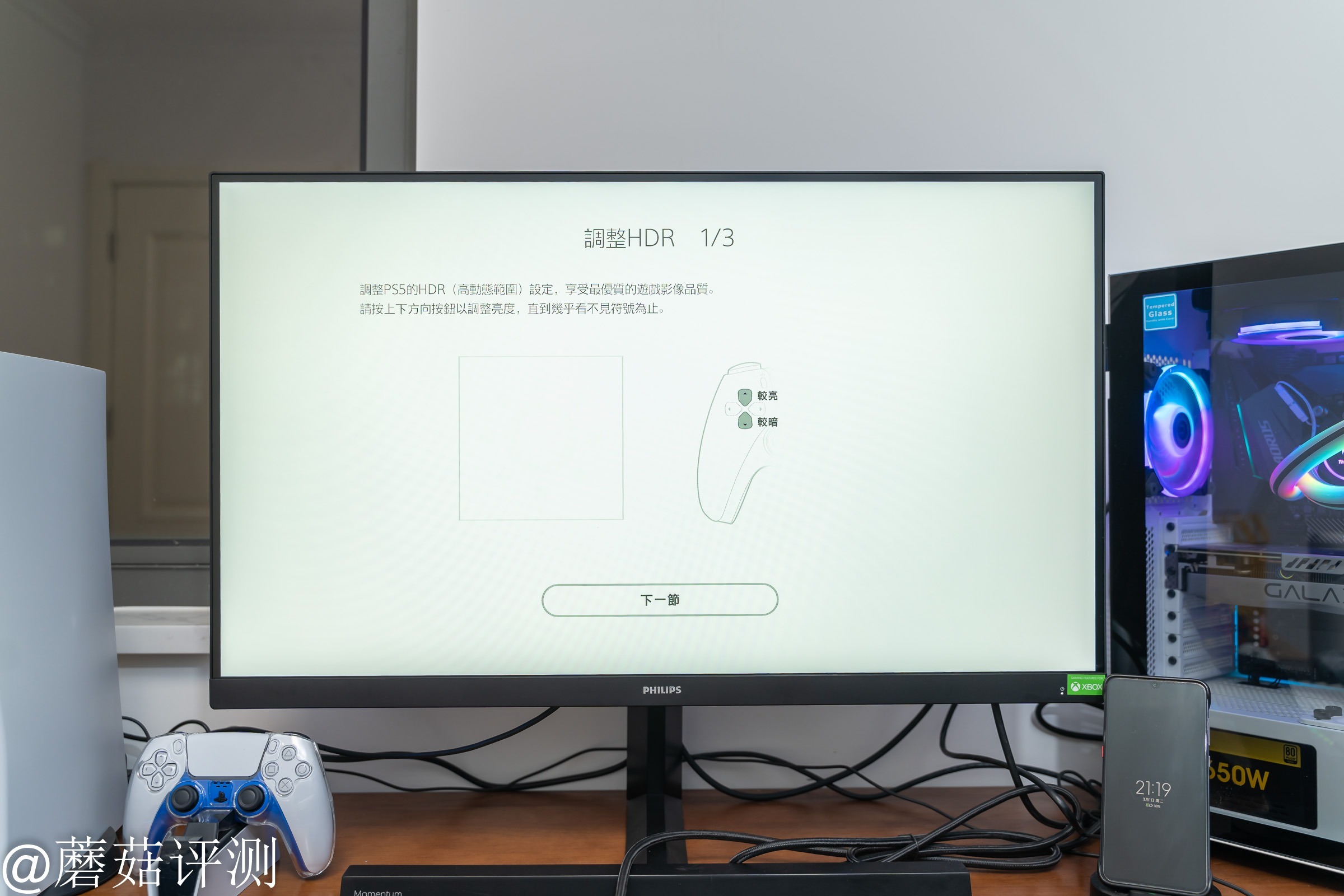▼同时,这台显示器还支持HDR功能。索尼PS5在开启HDR之后,最好提前校准下显示器的HDR显示效果。HDR的校准分三步,分别是亮出暗部校准、暗部亮处校准和暗部暗处校准,校准完HDR之后,整体游戏画面的HDR效果会更加出色。