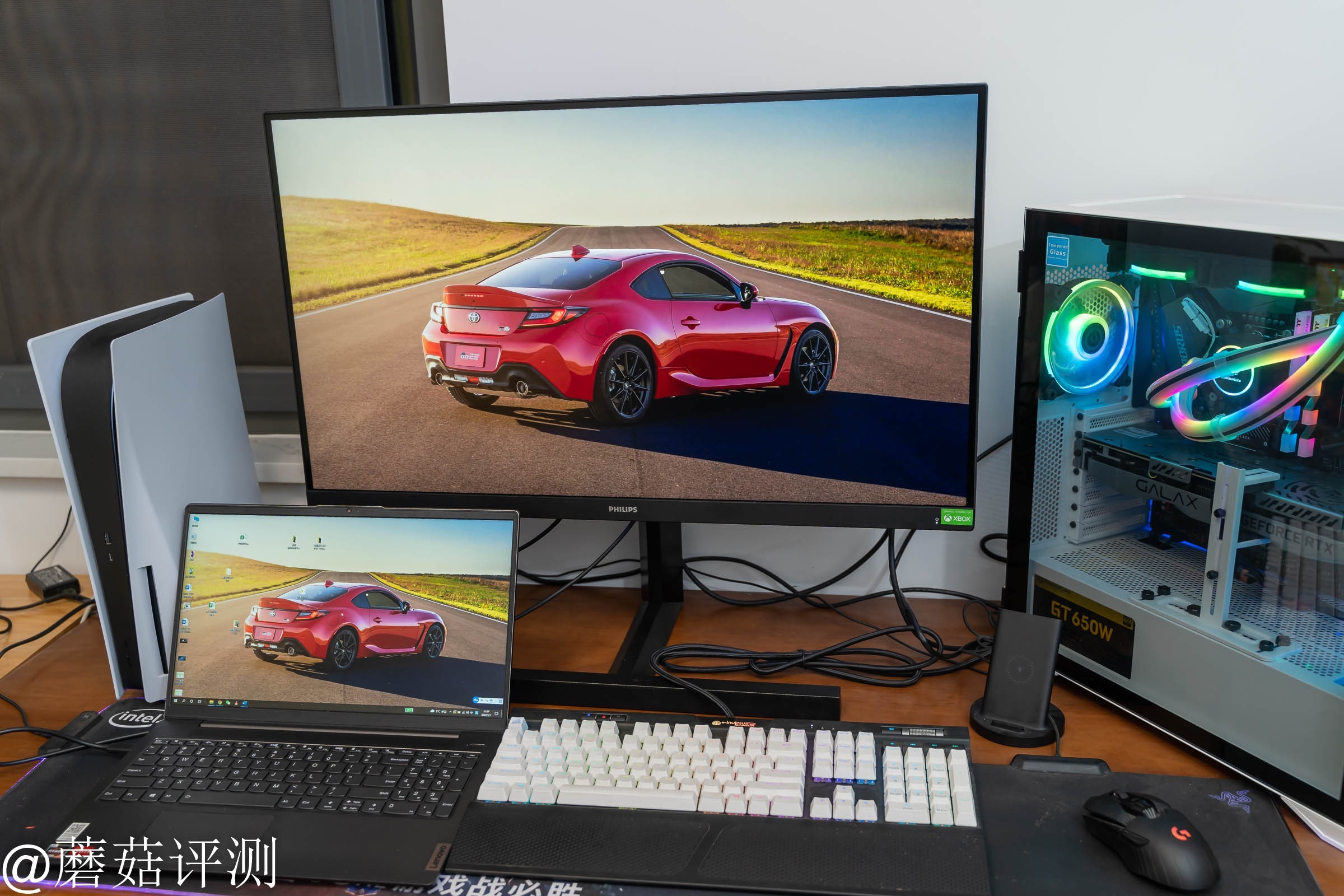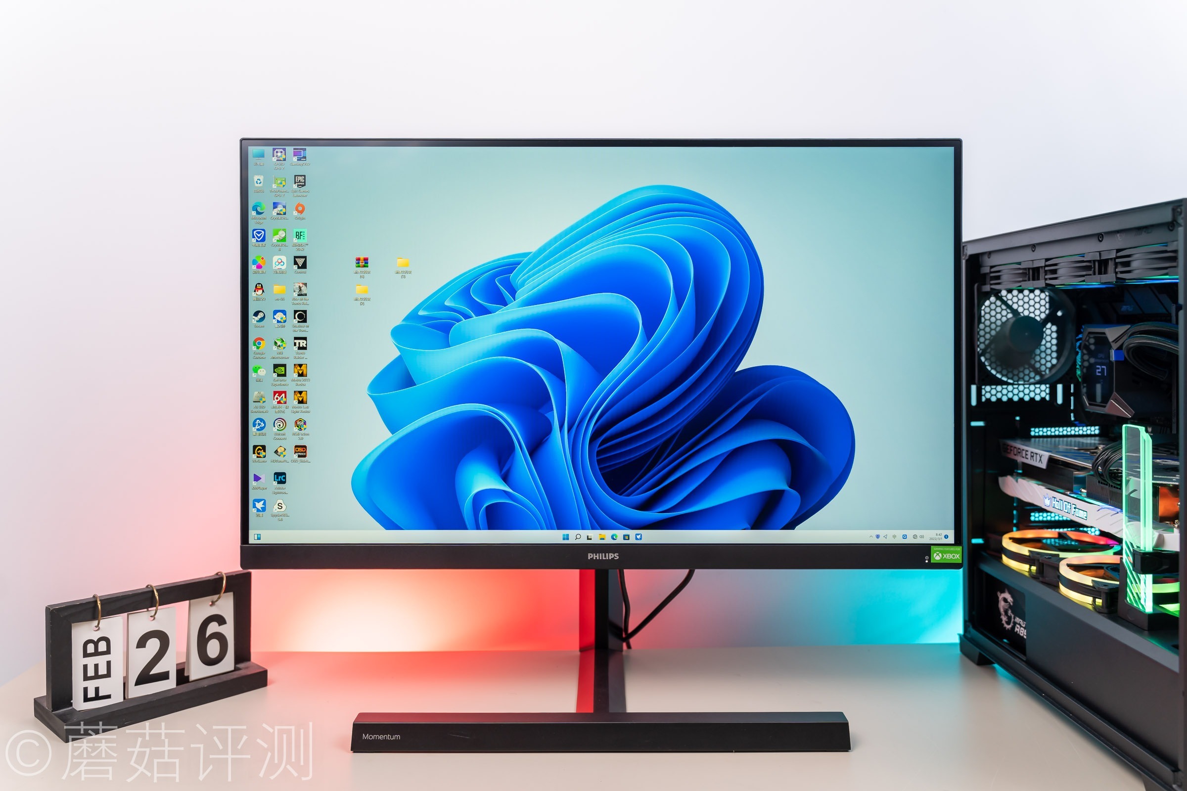 唯一让蘑菇不太喜欢的就是这个显示器支架,太硬朗、太有风格、太有设计了,略微有些侵占桌面空间。