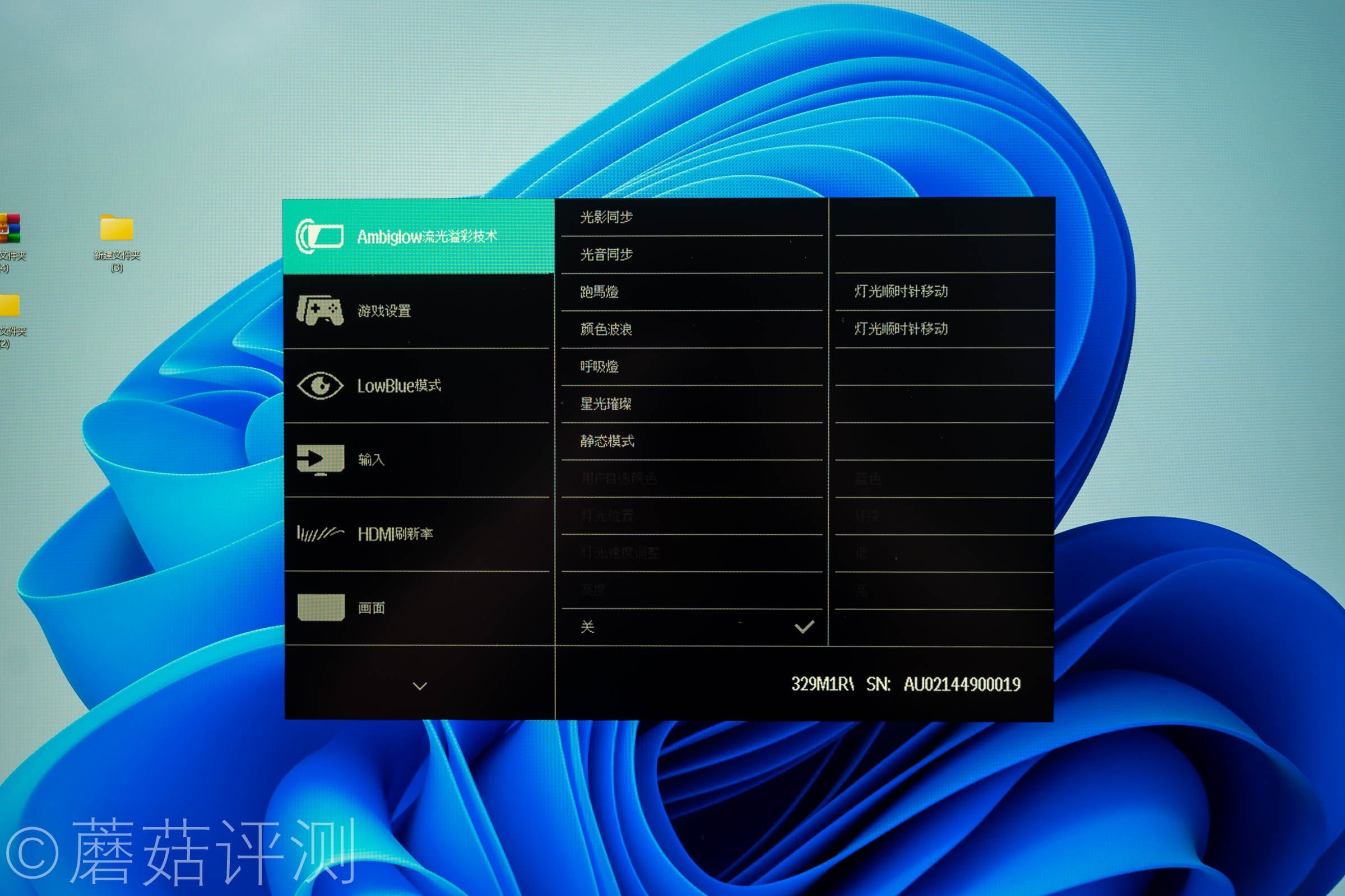 ▼显示器的内置菜单非常的简单,菜单逻辑很清晰,三级菜单设计。左侧是主菜单,中间是二级菜单,右侧是三级菜单。显示器菜单的第一项,就是设置环景光技术,这个很有意思。
