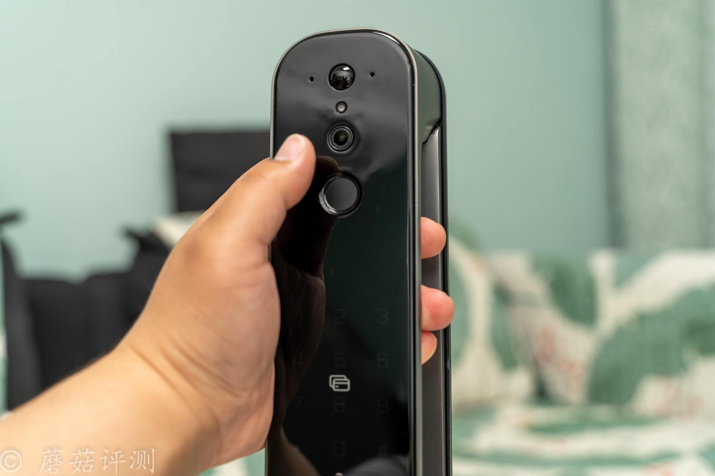 ▼萤石DL30V智能视频锁上半部分是各种传感器的位置,最下面是指纹识别的位置,微微凹陷,很明显。