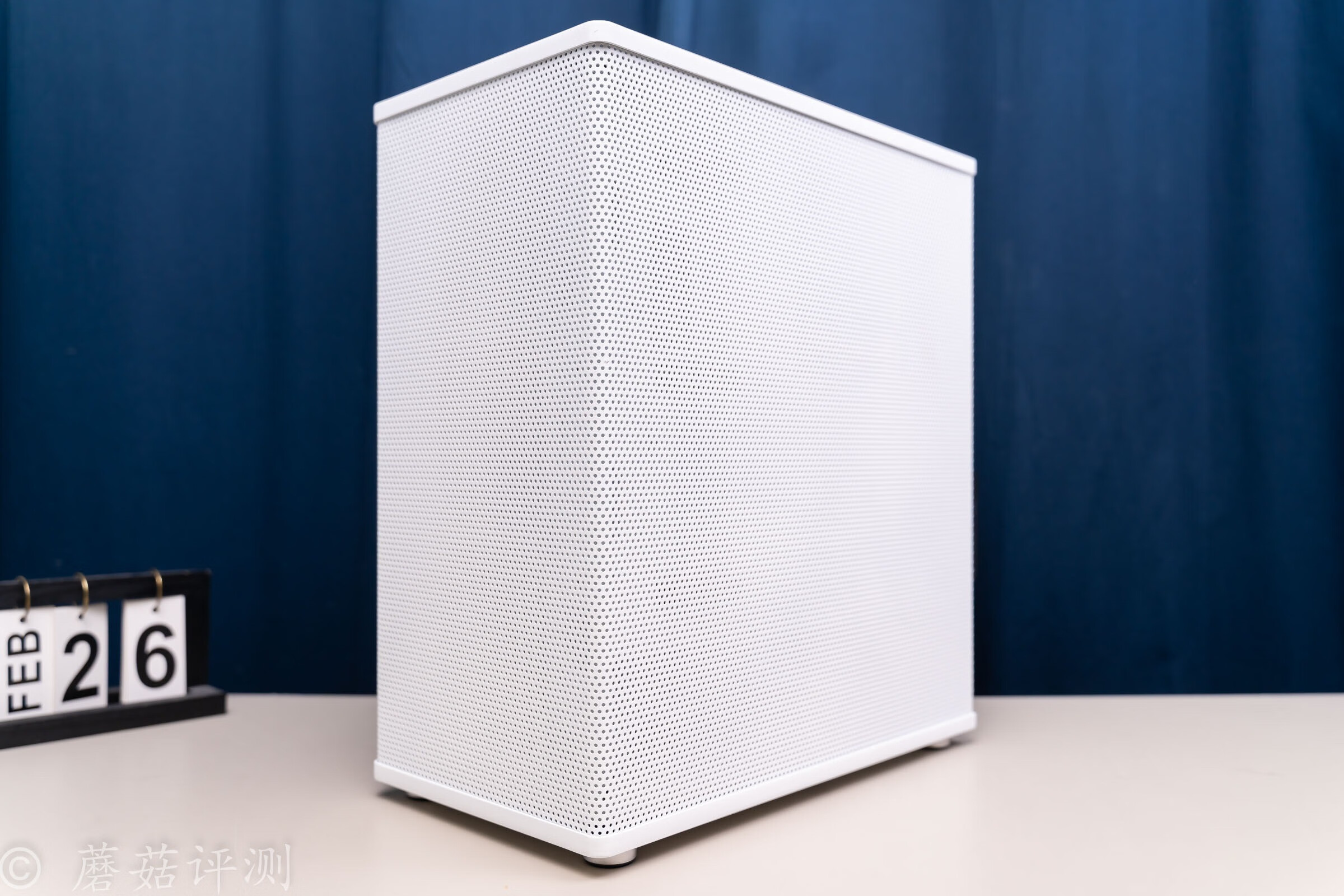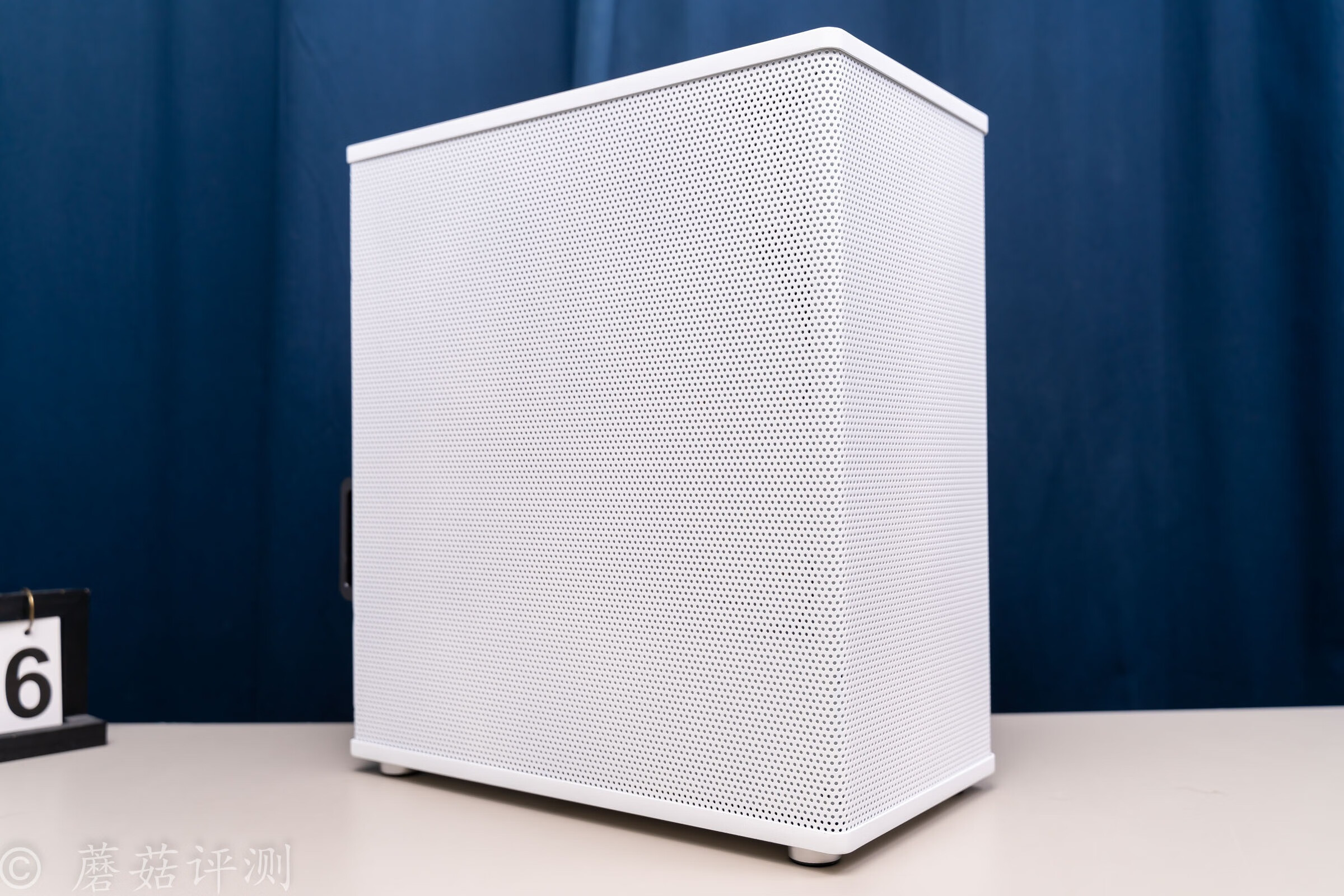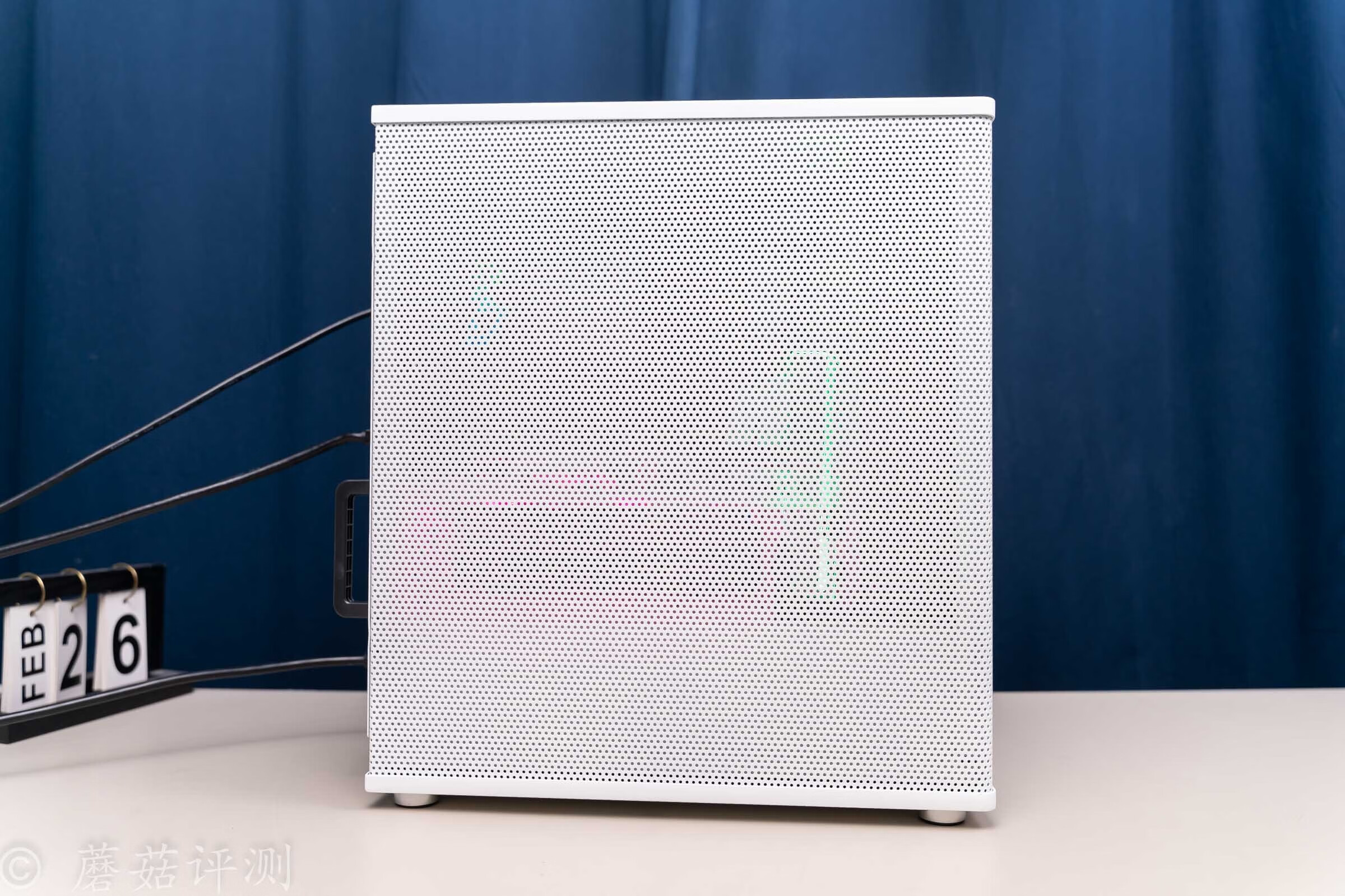 ▼机箱的外观非常漂亮,纯白色的,外面是一圈的金属冲孔网。