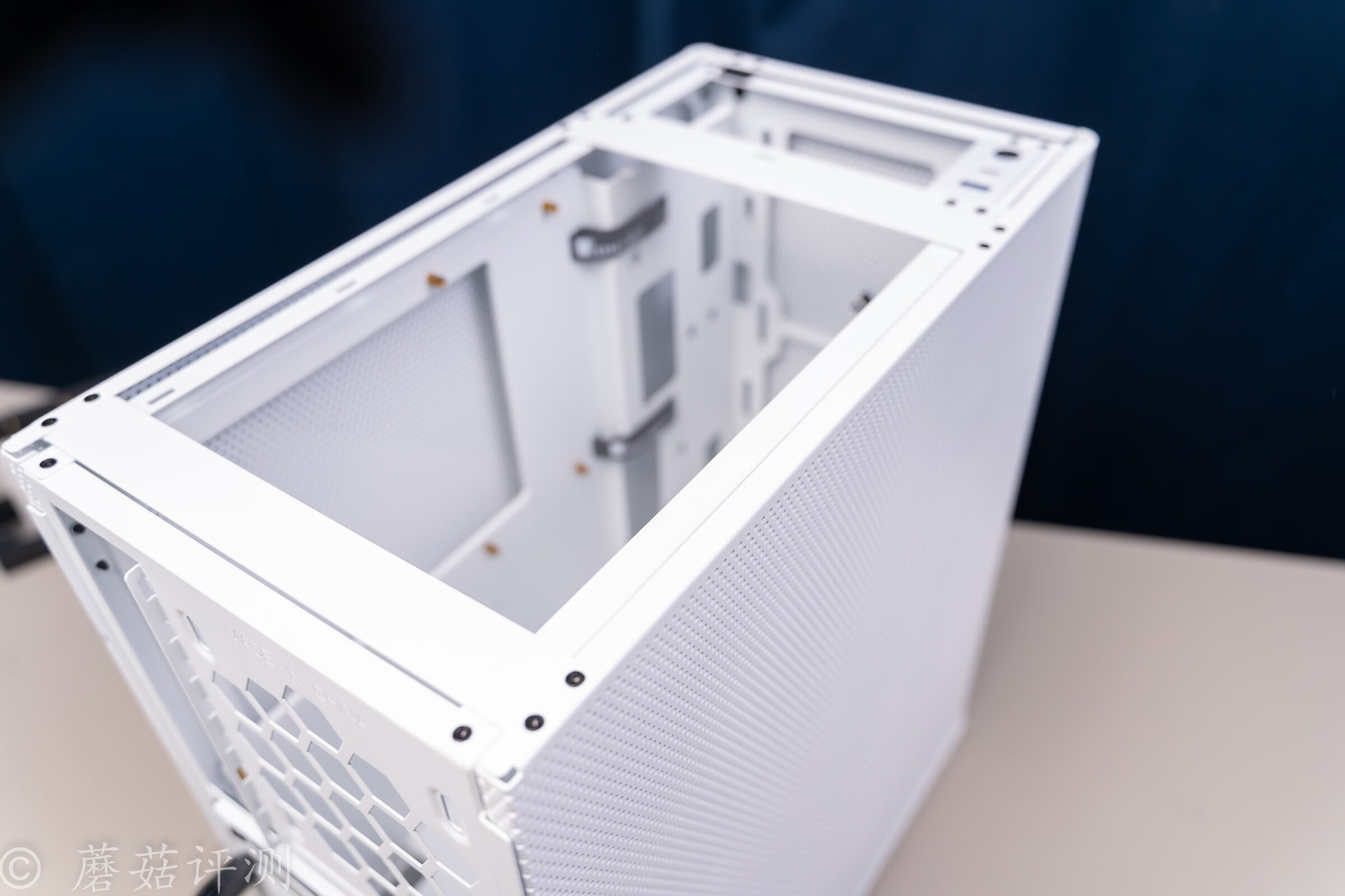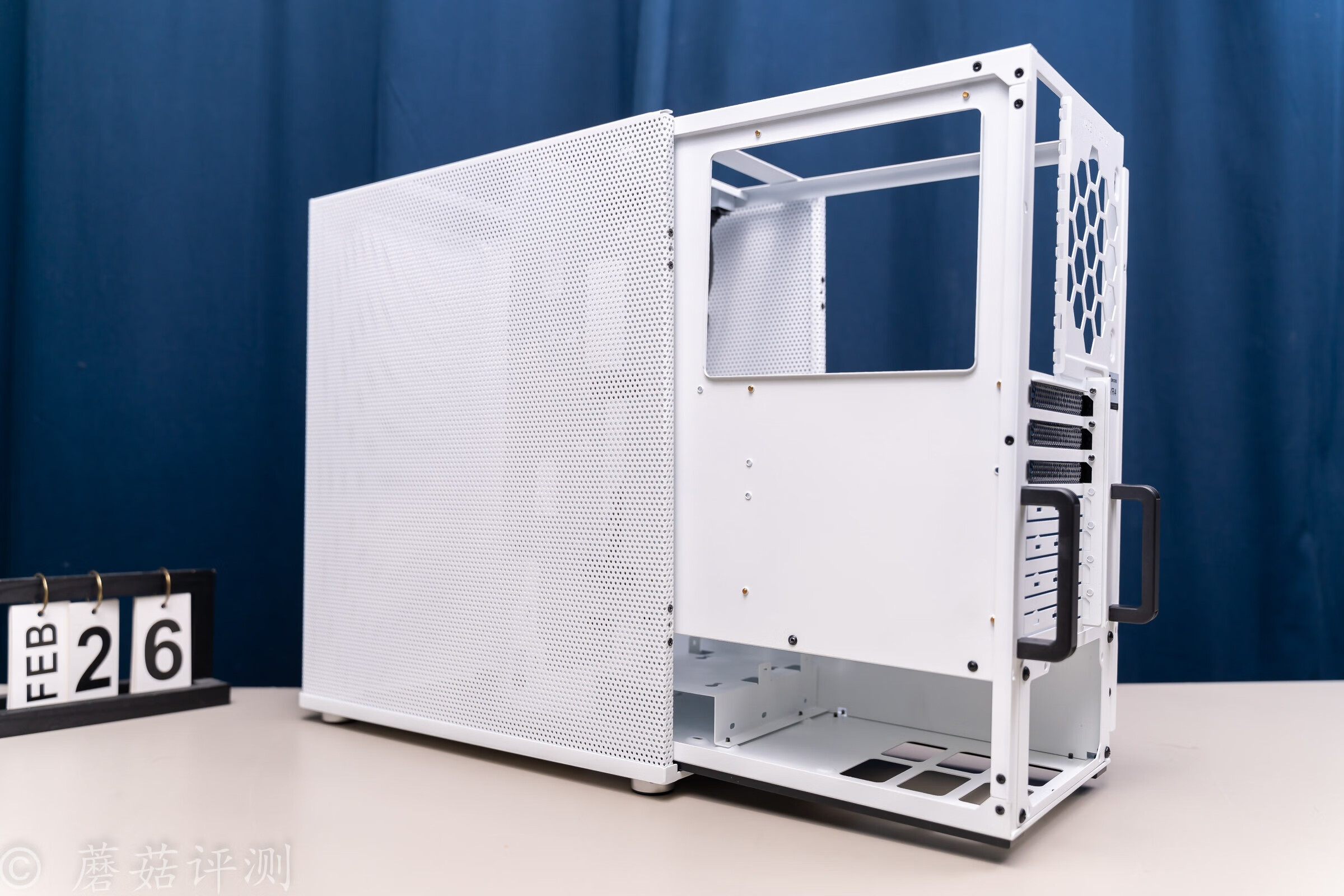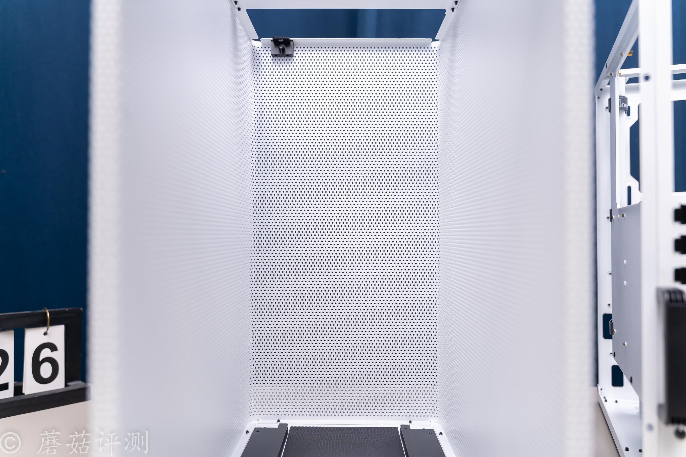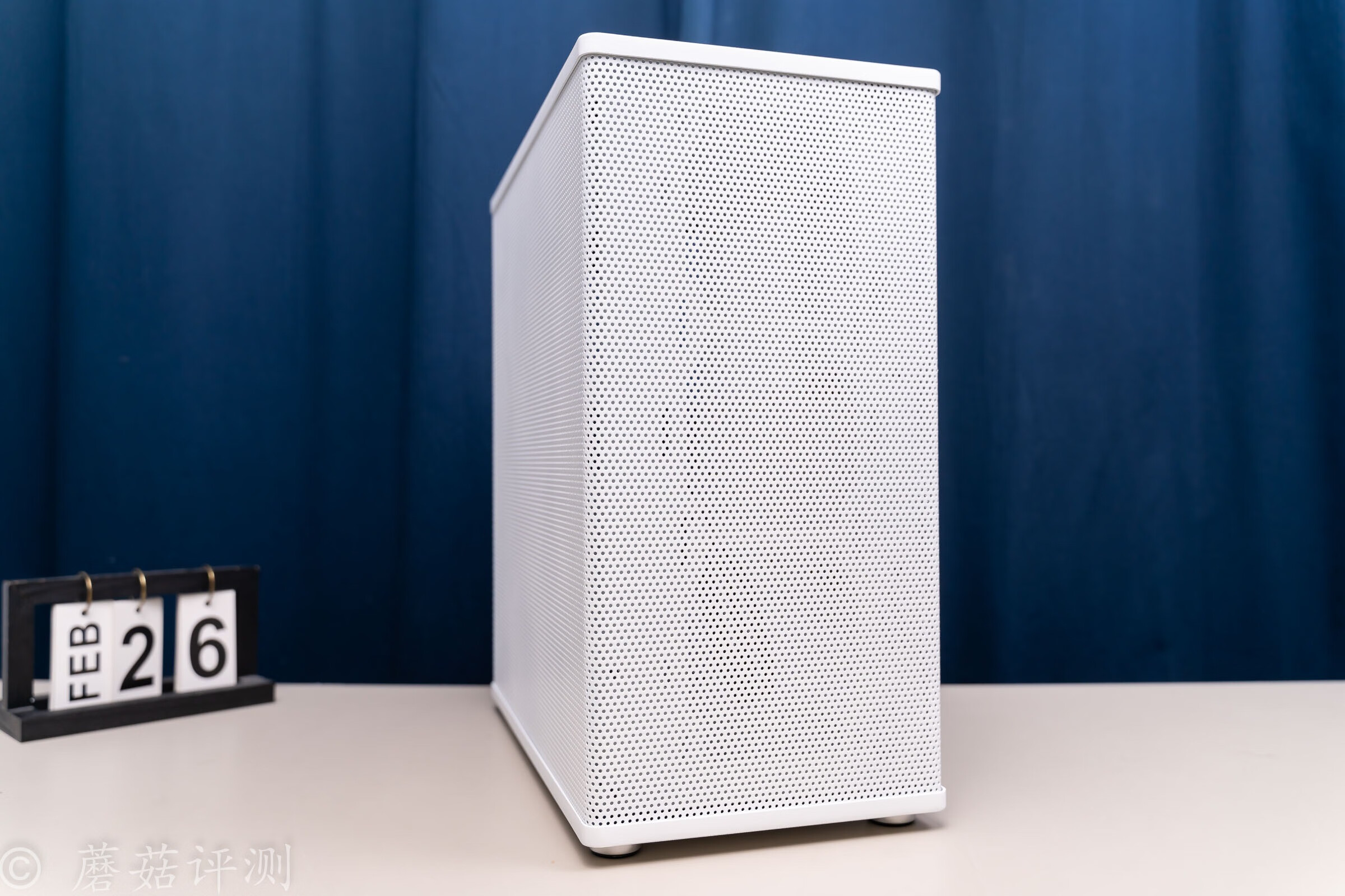 ▼机箱的外观非常漂亮,纯白色的,外面是一圈的金属冲孔网。