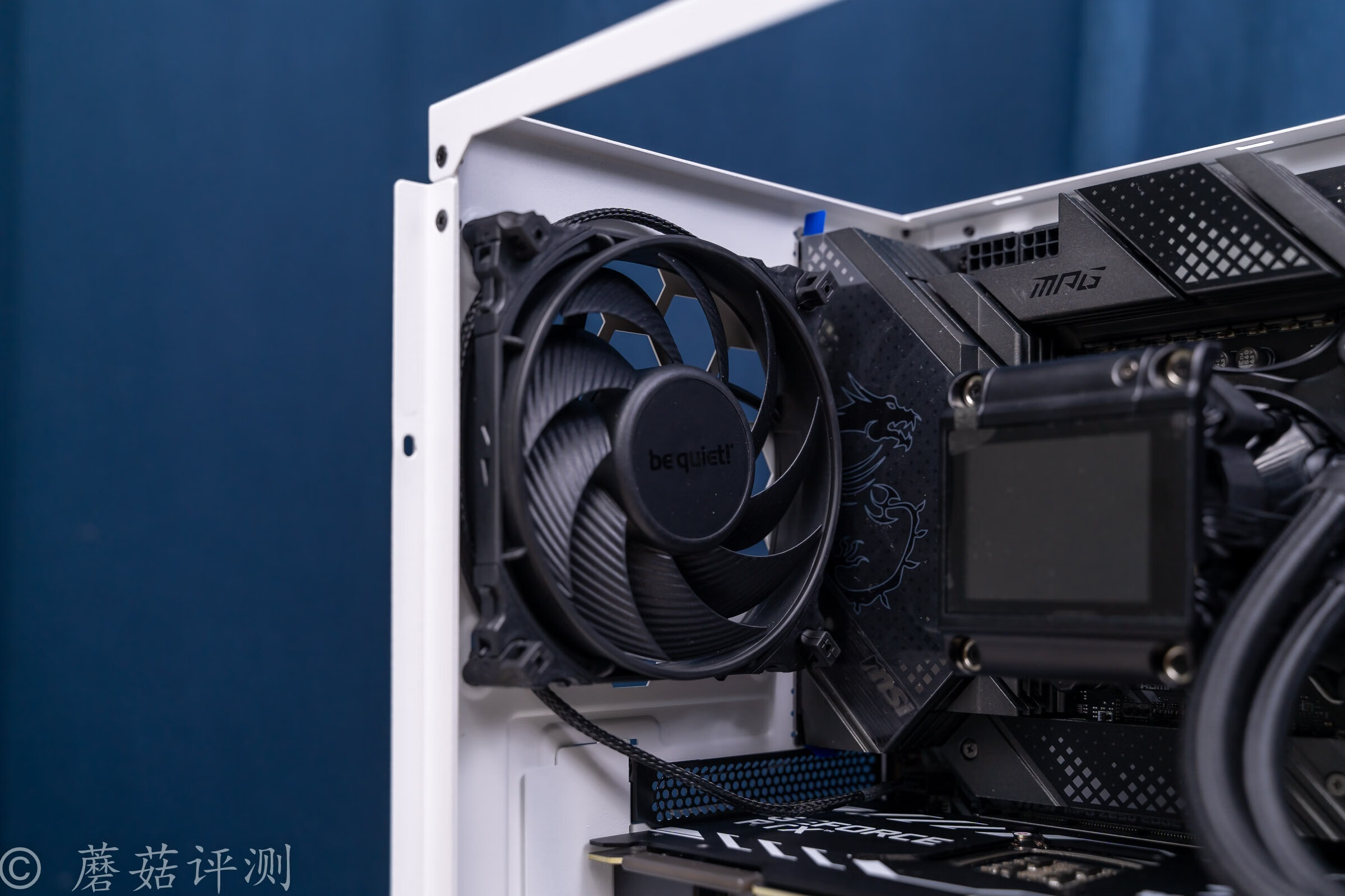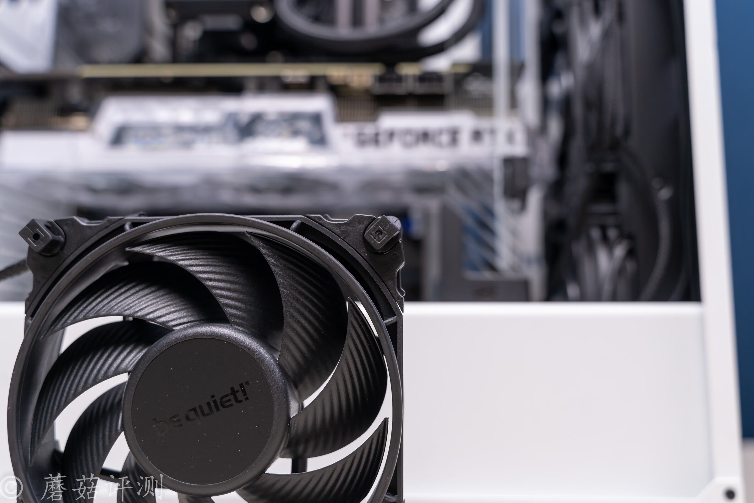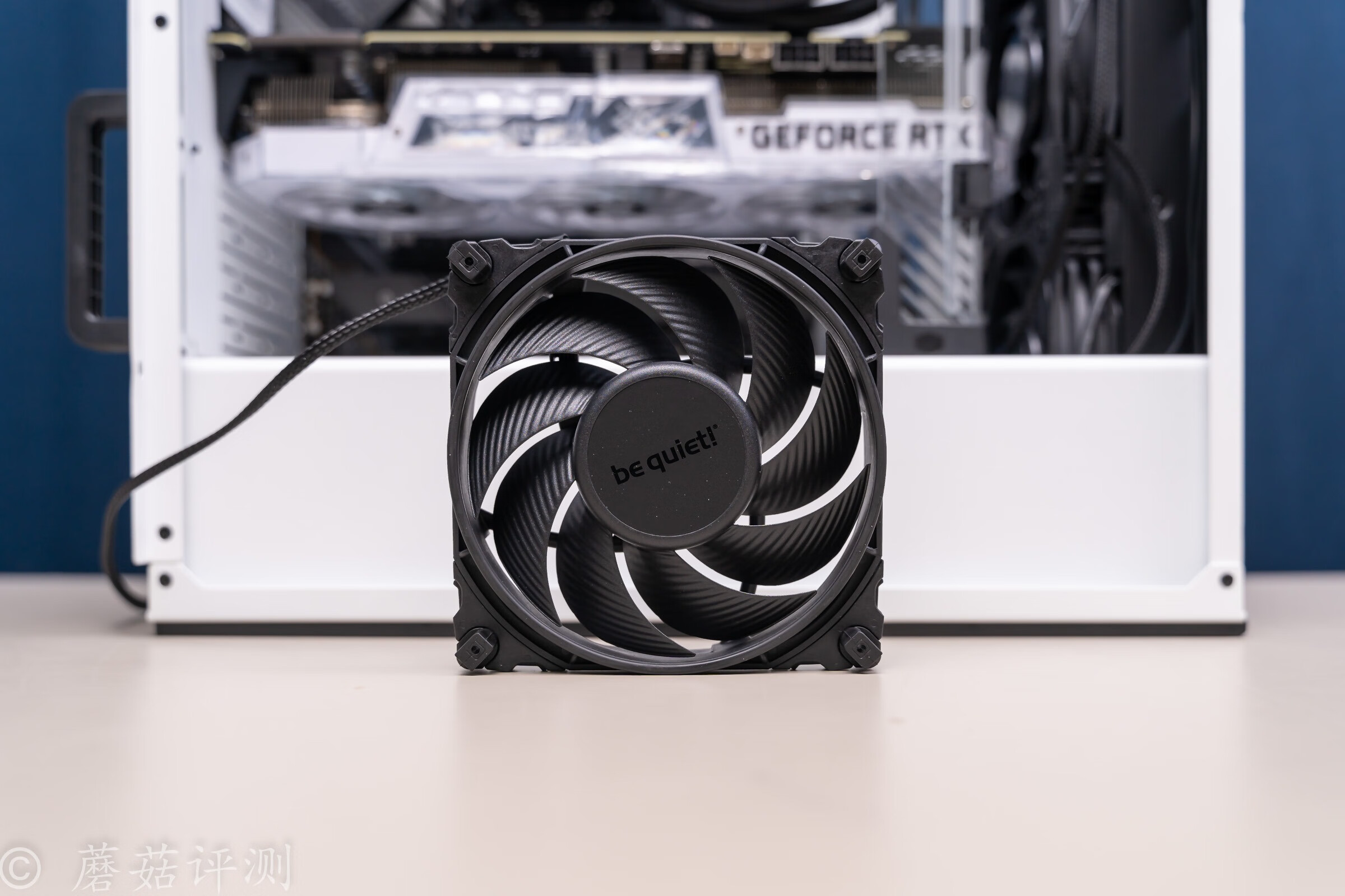 ▼对了,这里装一把机箱风扇,德商德静界be quiet!的Silent Wings 4 120mm PWM机箱风扇。机箱风扇采用全黑的配色,扇叶叶片有9片,每片扇叶上都有复杂的波纹。