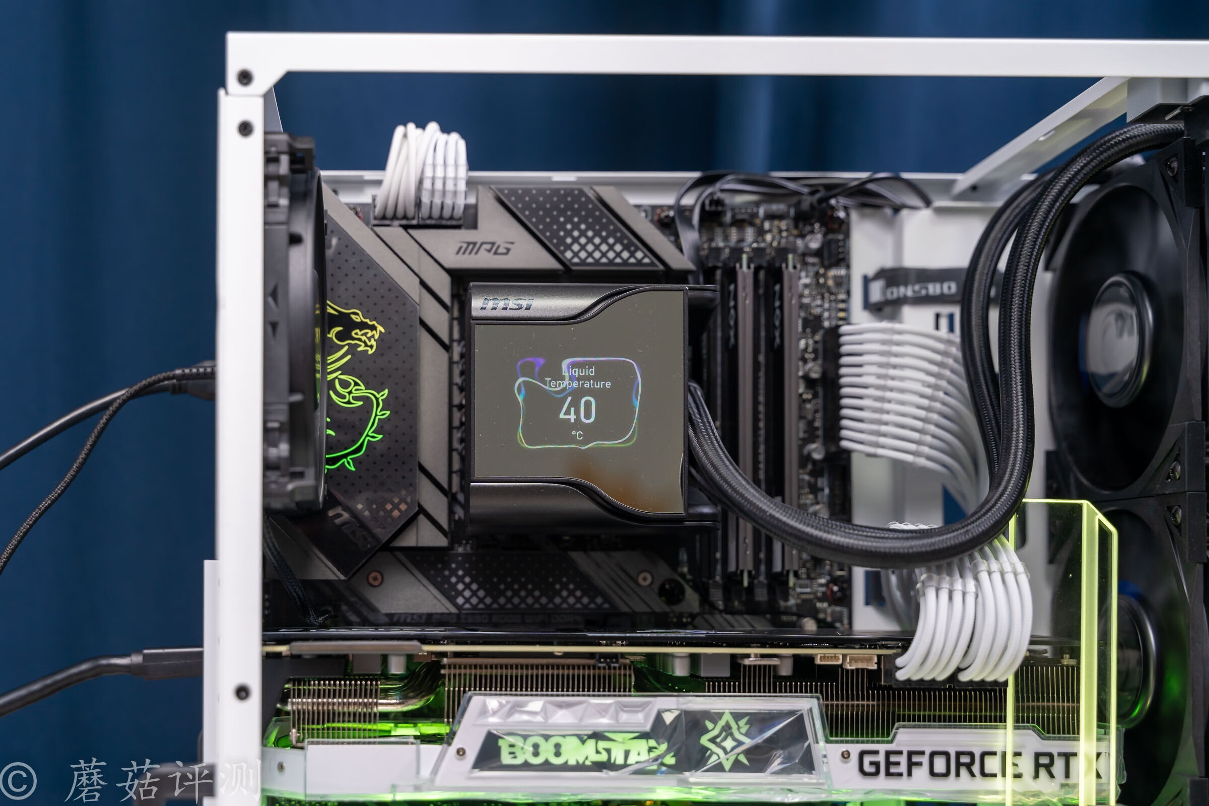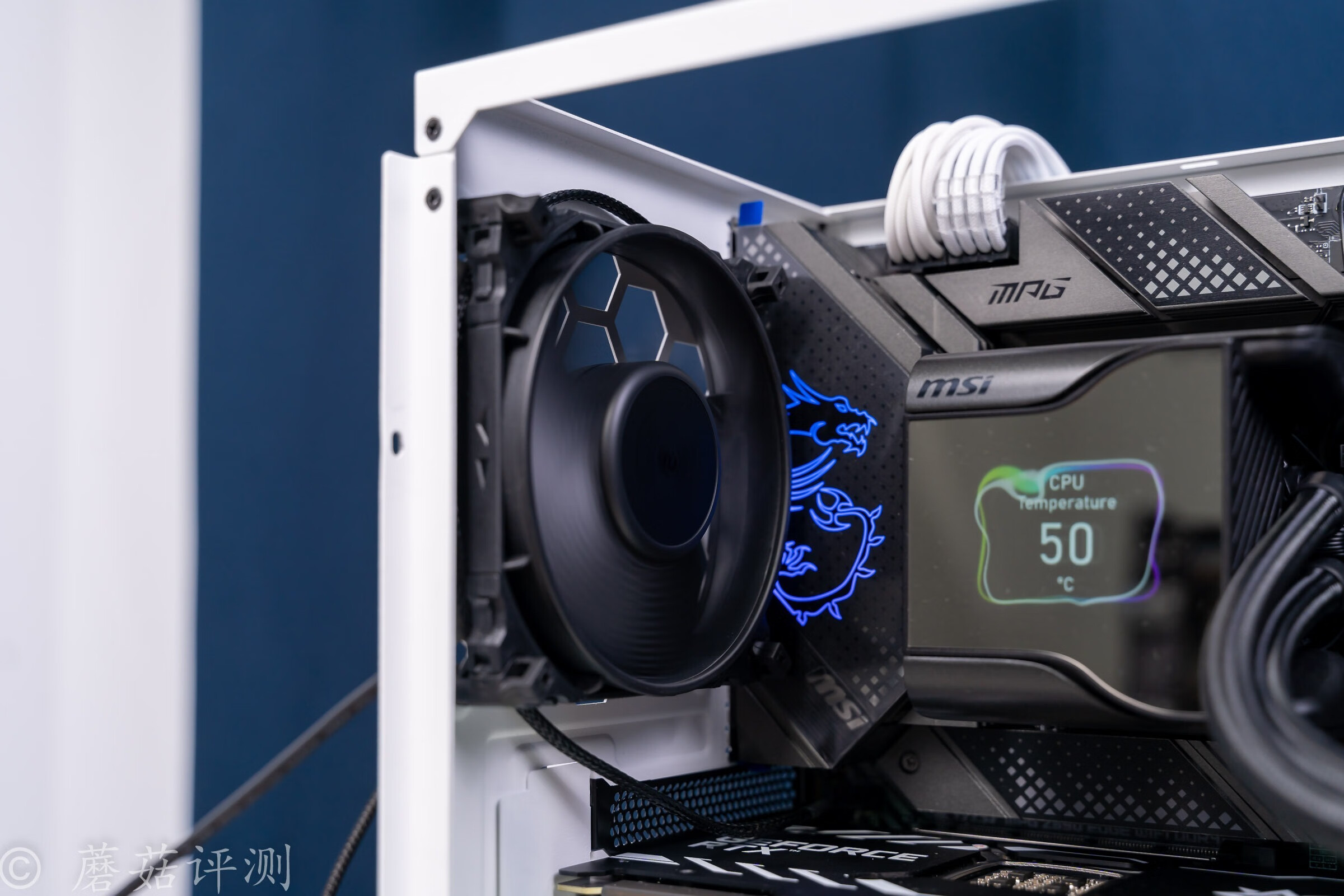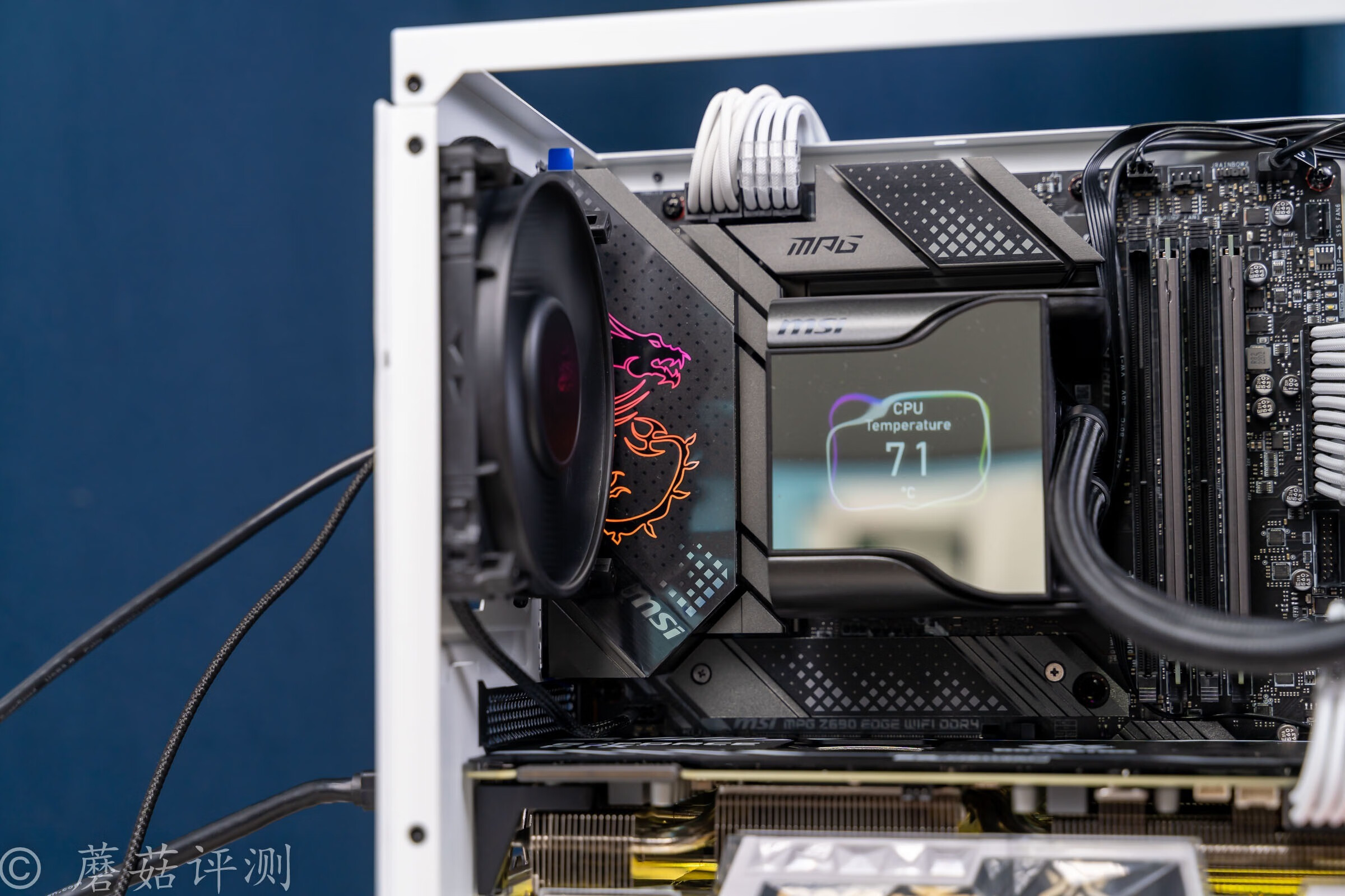 ▼散热用的是微星的战神S360水冷,水冷的水冷头正面有液晶屏幕。这个液晶屏幕的效果还是非常不错的,支持显示图片、文字、动图和硬件参数等等,玩法很多样。