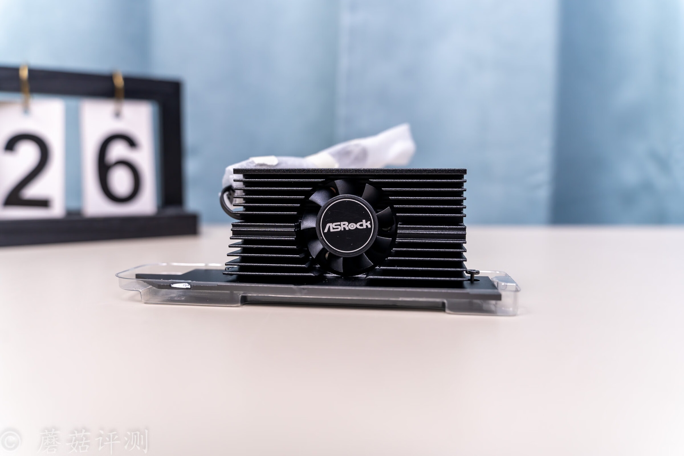 ▼主动M2散热片,散热片的体积很大,中间有一个小风扇。