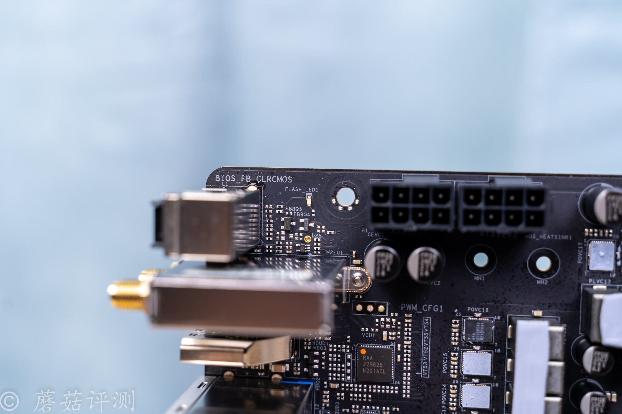 ▼主板后部IO接口的最上面,有一颗贴片LED,这颗LED用于指示主板BIOS的刷写状态。
