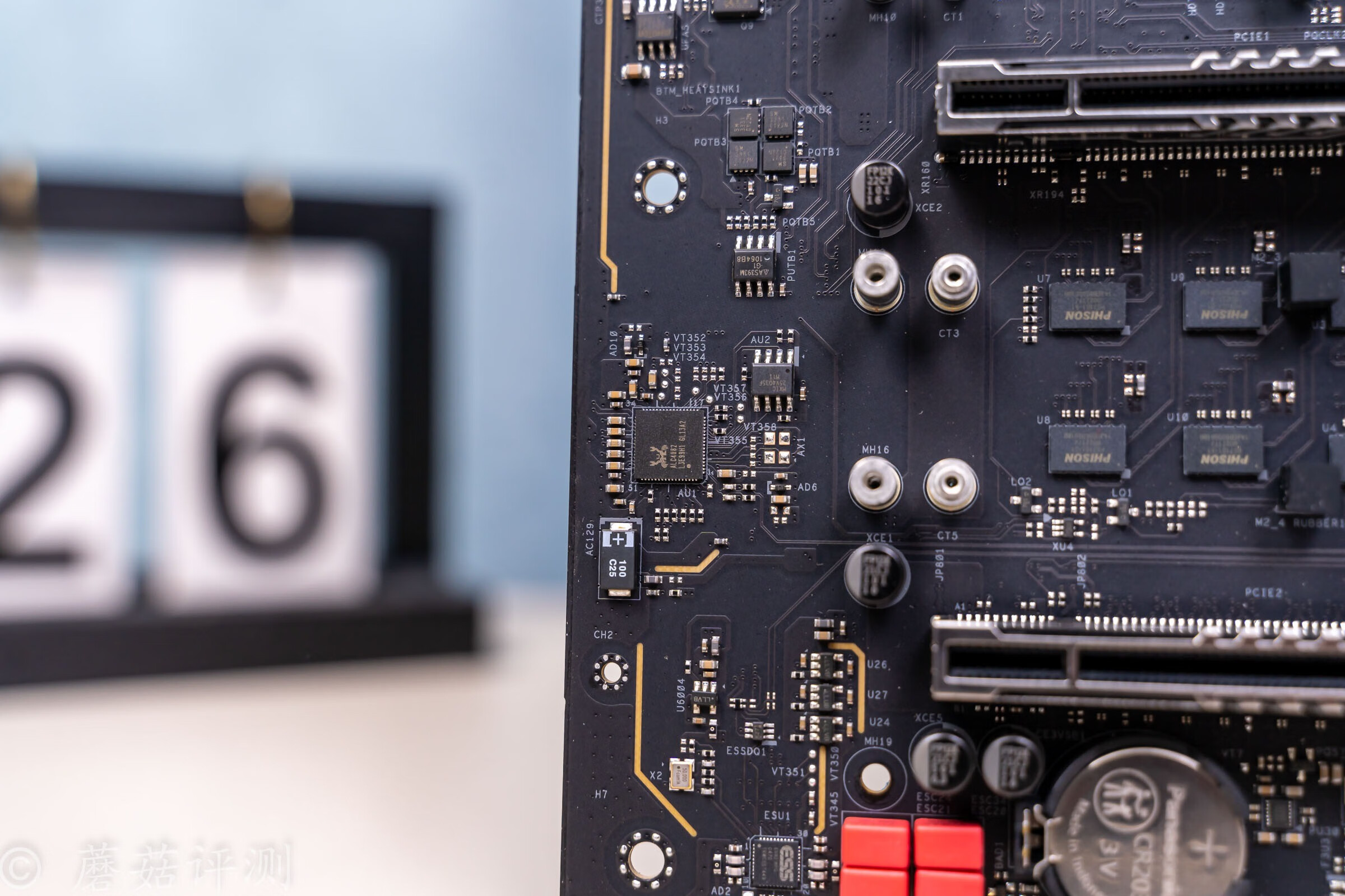 ▼主板左下角,有音频芯片,小螃蟹的ALC4082,应该是最新的小螃蟹家的旗舰芯片。