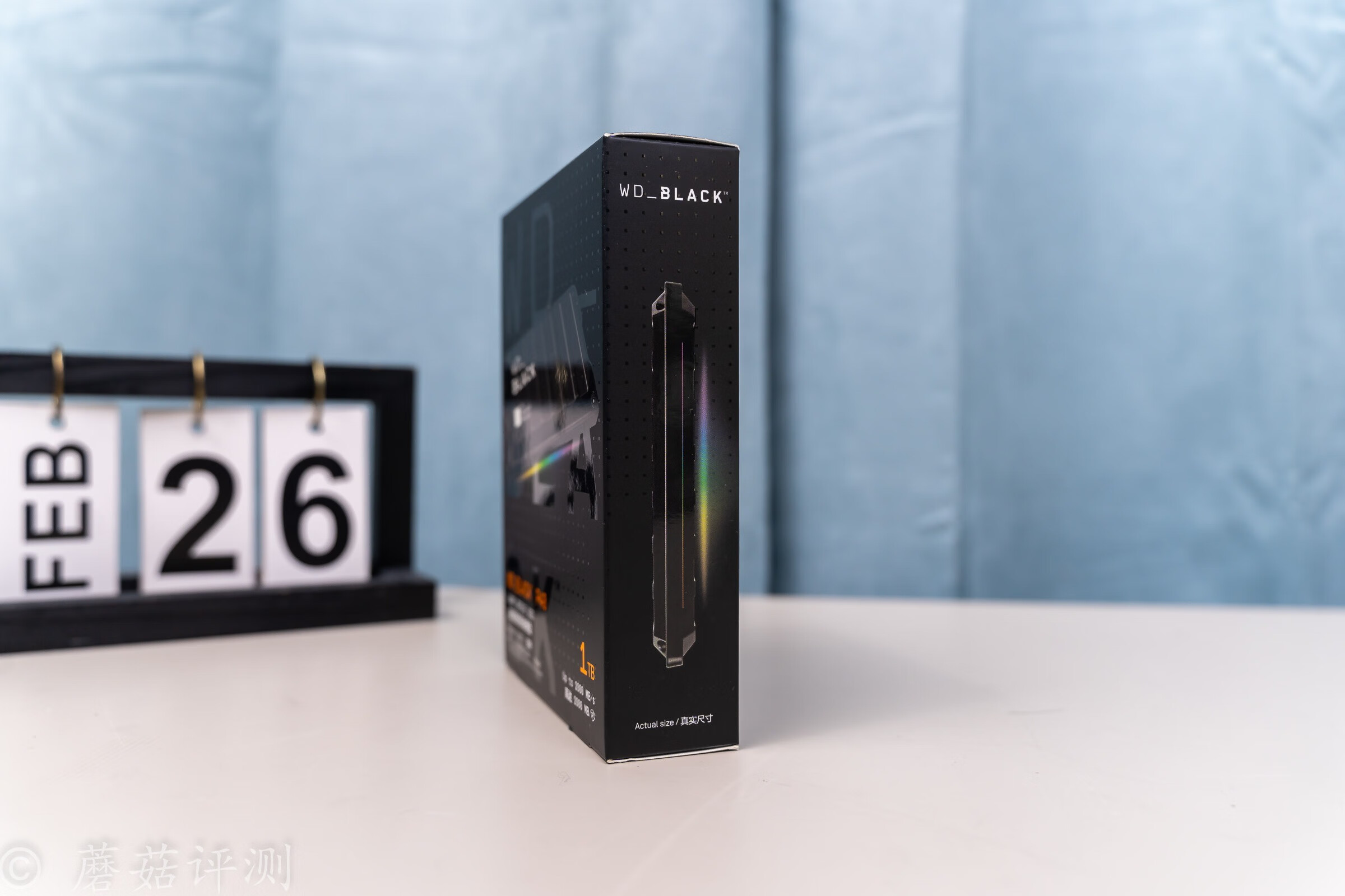 ▼移动固态硬盘的包装盒采用全黑设计,看起来质感不错。