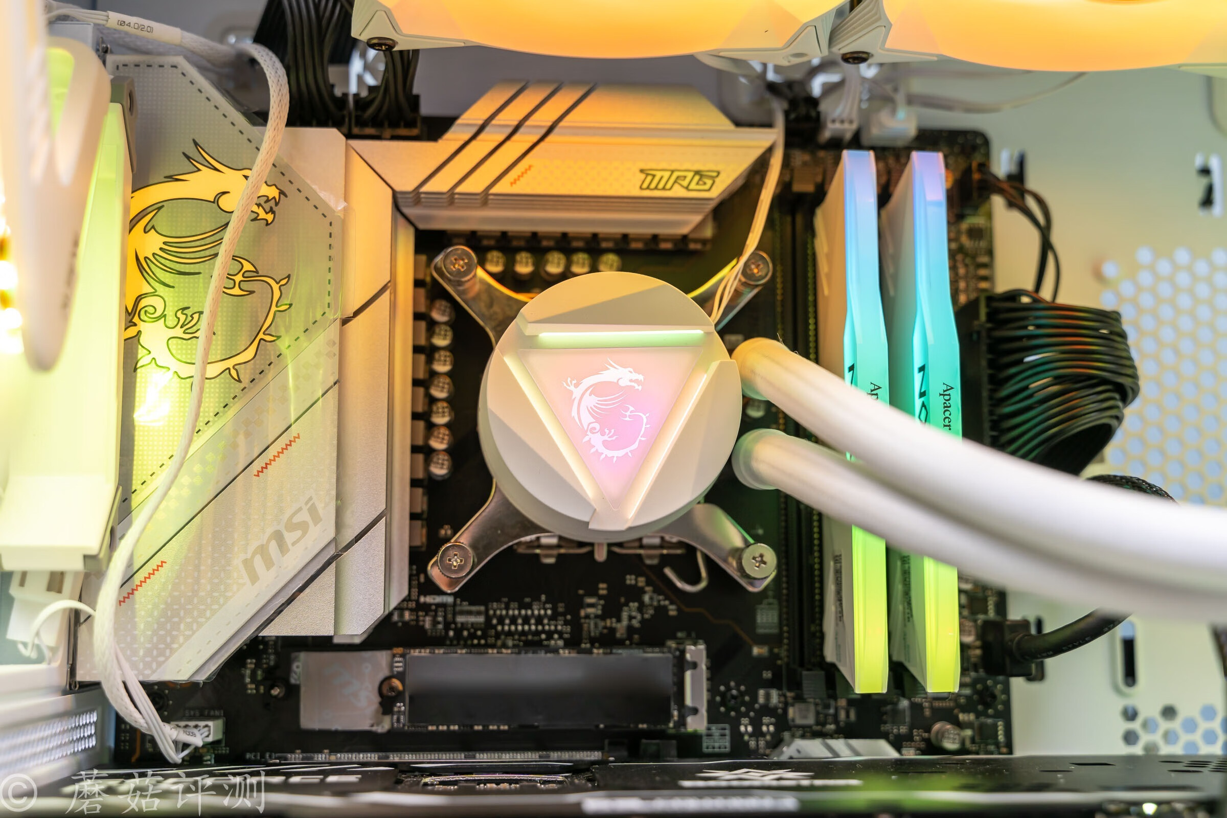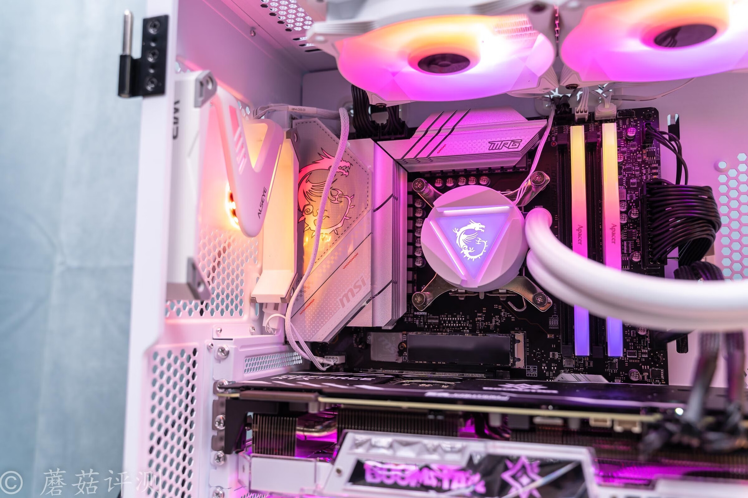 ▼处理器这里使用的是13600K,用来压制这颗处理器的是微星的寒冰240R白色定制版水冷。这款水冷的颜值非常漂亮,尤其是水冷头部分,造型设计的很有创意,还支持ARGB灯效。