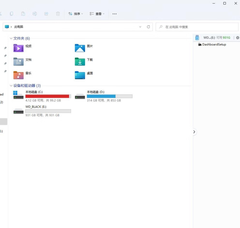 ▼ WD_BLACK P40游戏移动固态硬盘直接连接电脑,就可以轻松在我的电脑里面看到这块硬盘,也就是E盘。