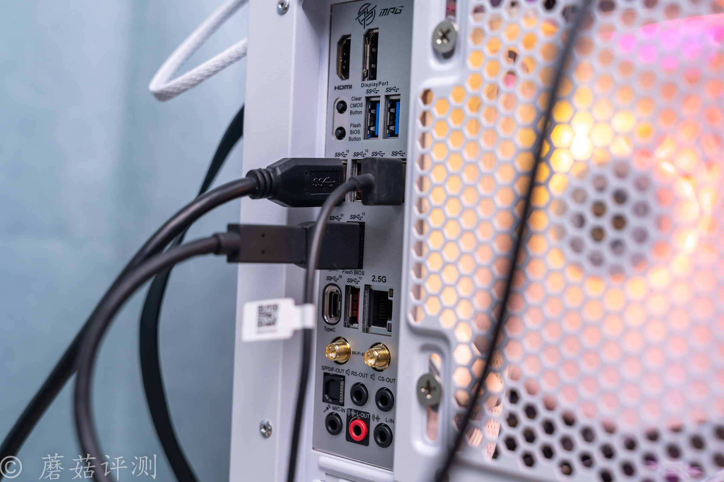 ▼在主板的IO接口方面,这块主板的表现也非常不错。后面标配了两个Type-C接口,其中一个带宽20Gbps、另一个带宽10Gbps,可以轻松满足日常使用需求。