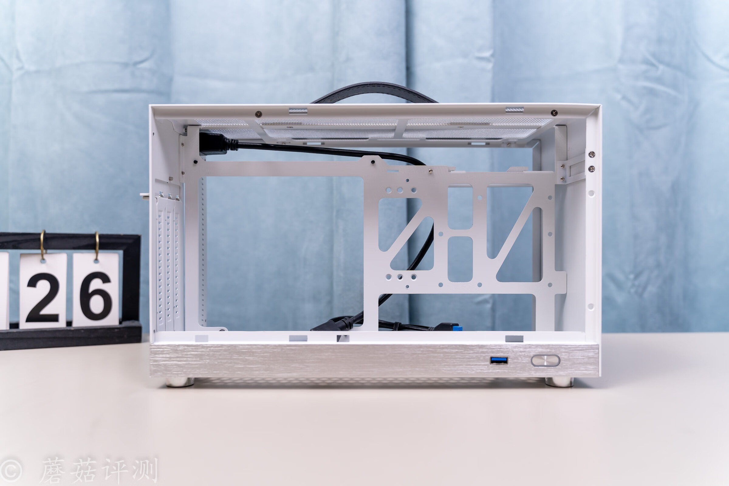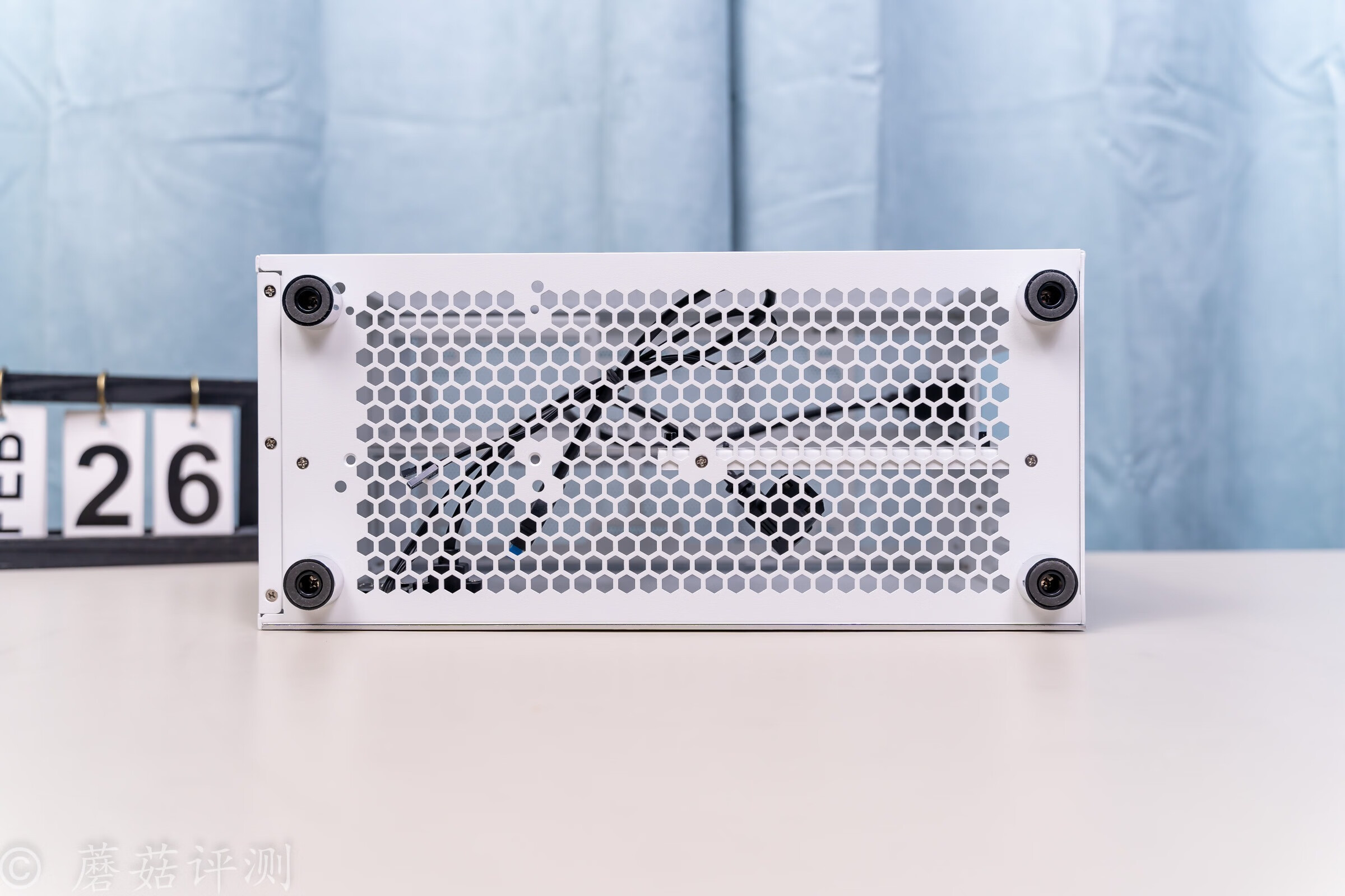 闪鳞S400这款便携式ITX机箱,对这台机箱,蘑菇真的是非常的满意。整体的体积虽然要稍微大一些,但是整体的装机体验、散热体验,都要提升很明显不只一点点。日常安装各种硬件会更加的方便,另外在机箱的顶部,还有位置安装两把机箱风扇,这可就太棒了。
