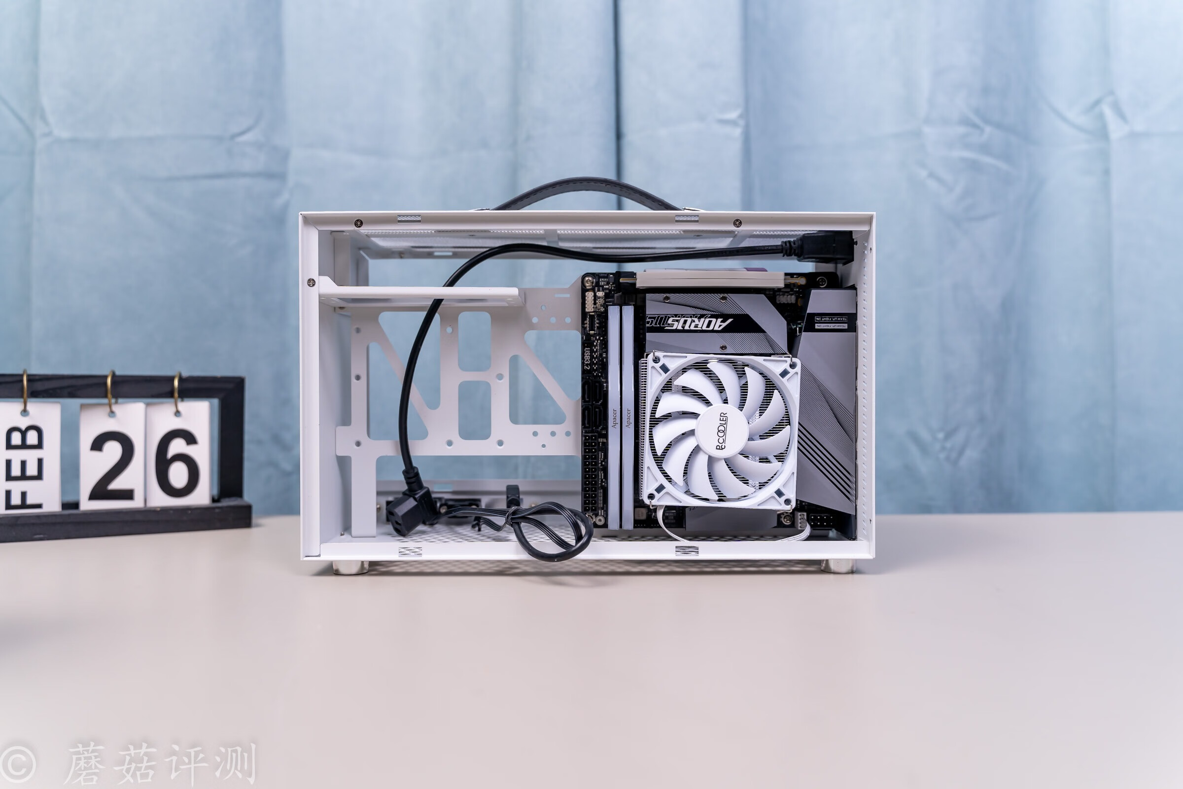 ▼准备先把ITX主板塞进机箱,看看整体的效果。