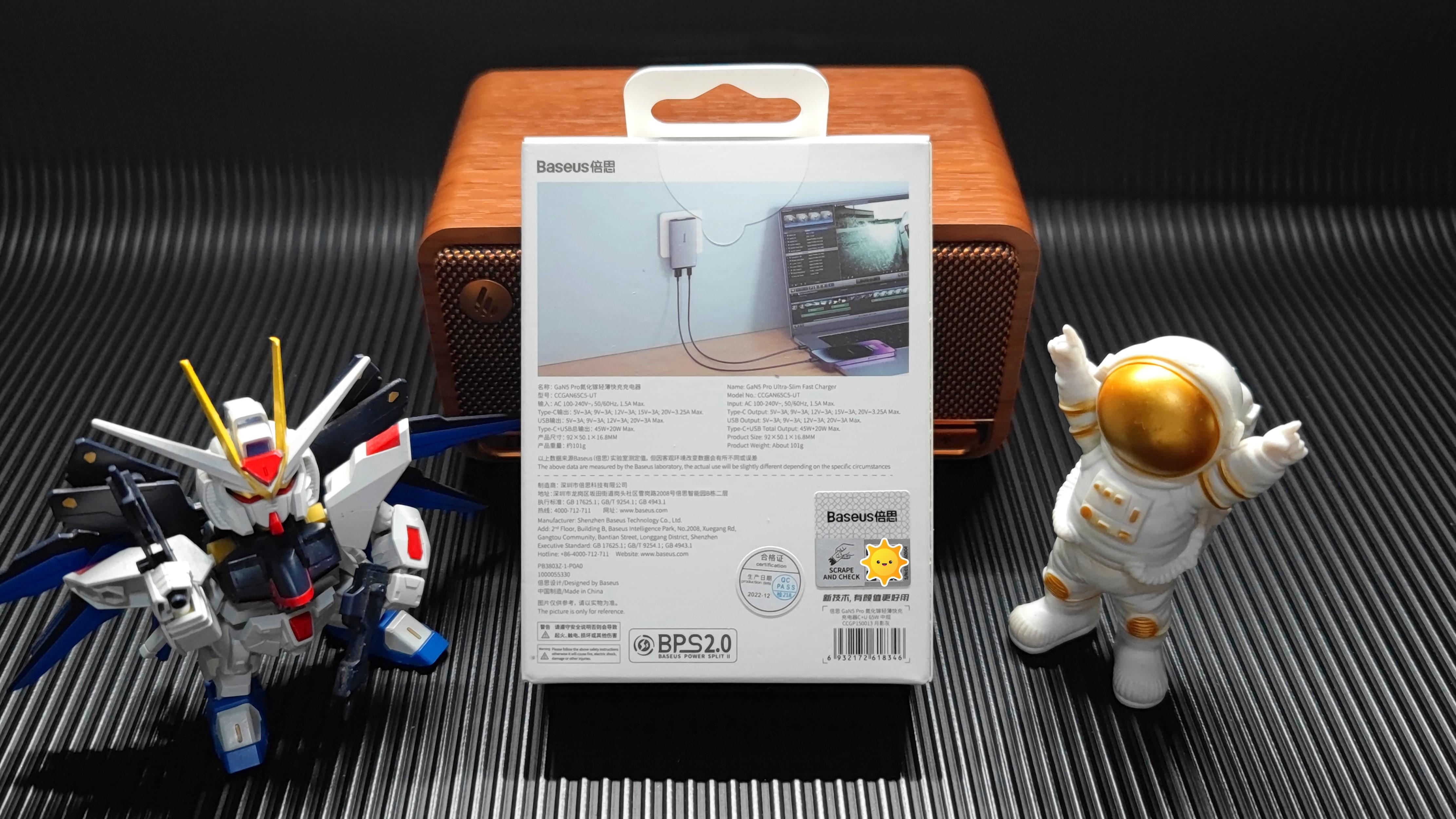 ▲从这个角度看, 倍思GaN5 Pro氮化镓轻薄快充头 确实 超薄! 此外,它还是支持 双口输出 ,设置有 一个USB-A 及 一个Type-C , 双口都支持快充! 其中 A口最高支持60W , C口最高支持65W 。